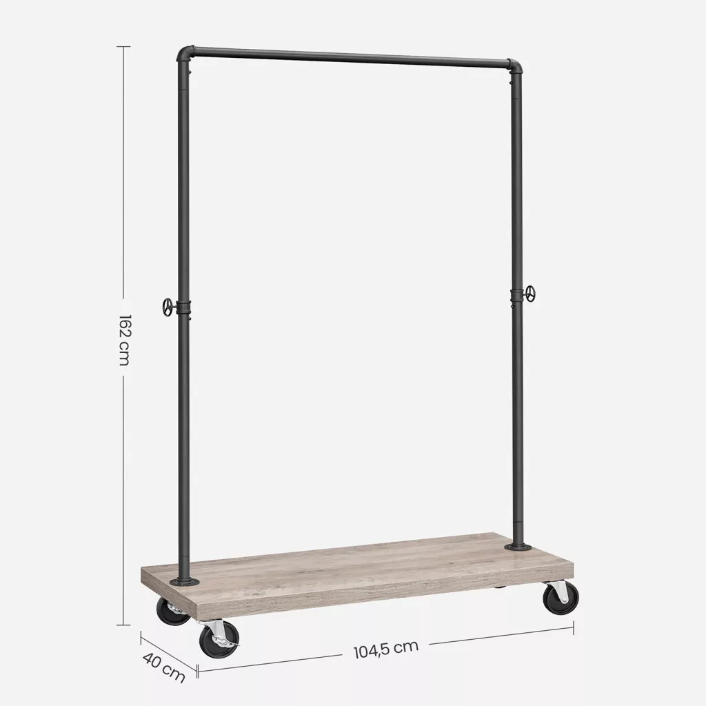 Ez a VASAGLE ruhaállvány tökéletes megoldást kínál a gardróbrendezési kihívásokra. Az ipari csővezetékes dizájn és a rusztikus polc kombinációja nem csak praktikus tárolóhelyet biztosít, de stílusos kiegészítője is otthonának. A masszív acélszerkezet és a tartós forgácslap polc hosszú élettartamot garantál.