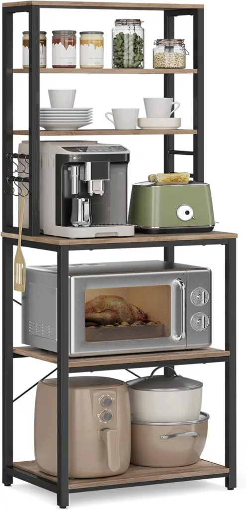 VASAGLE Ipari Stílusú Mikrohullámú Állvány 6 Polccal Szürke-Fekete