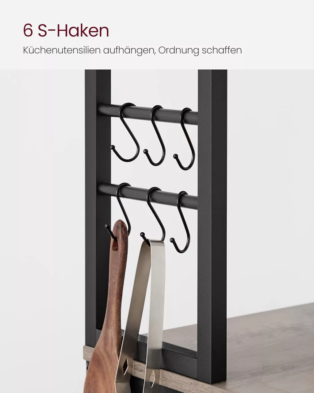 • Praktikus kiegészítők: 6 db S-alakú akasztó a konyhai eszközök tárolásához