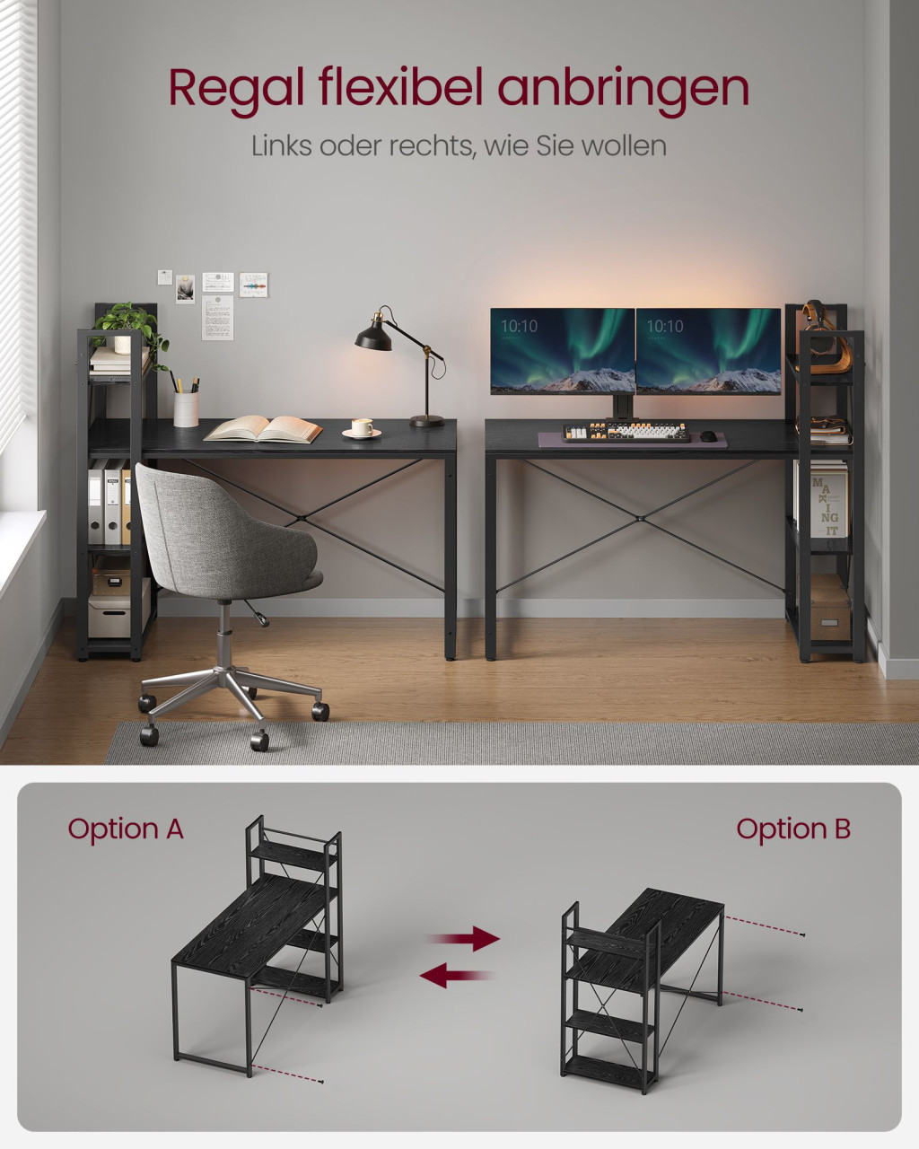 VASAGLE Ipari Stílusú Számítógépasztal Tárolópolcokkal Ébenfa Fekete