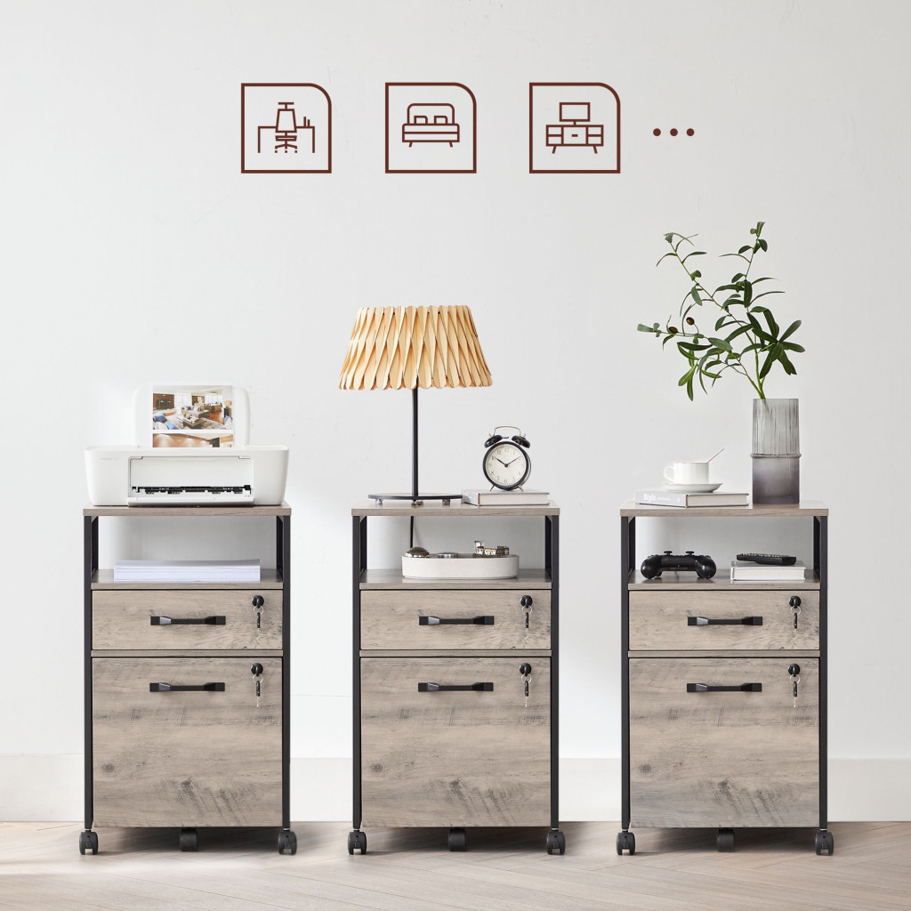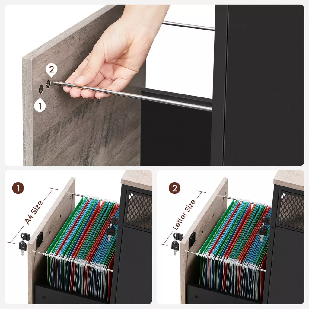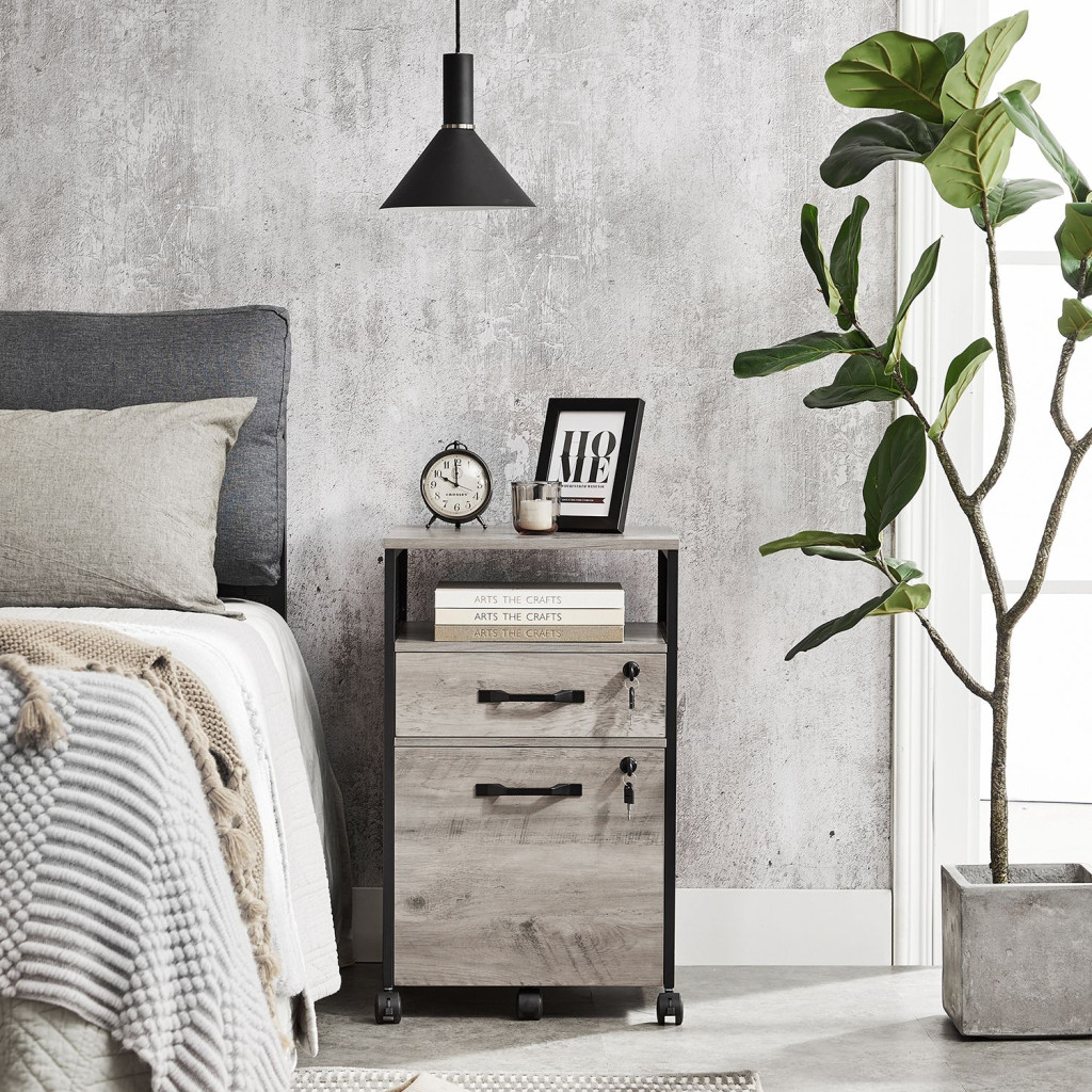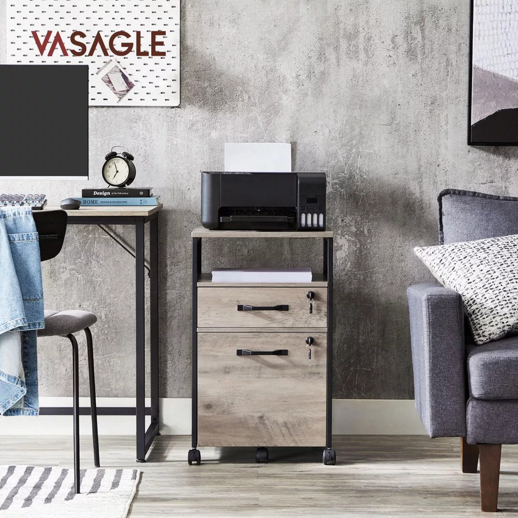 VASAGLE Ipari Stílusú Zárható Görgős Irattartó Szekrény Acélvázzal Szürke-Fekete