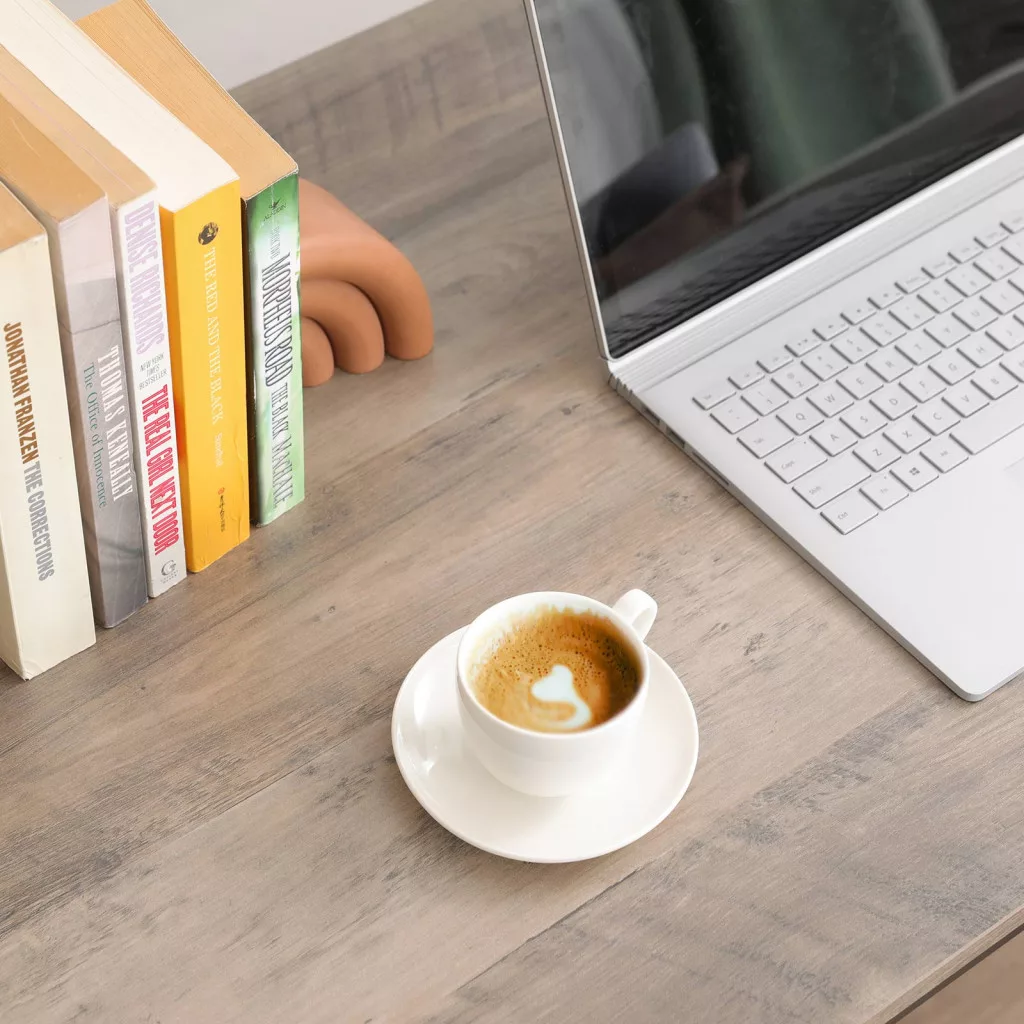 A robusztus acélváz és a minőségi faforgácslap kombináció garantálja a stabilitást, az állítható lábak pedig egyenetlen padlón is biztosítják az asztal stabilitását. A greige színű asztallap és a fekete fémváz modern megjelenést kölcsönöz, amely bármilyen lakberendezési stílusba könnyedén illeszkedik.
