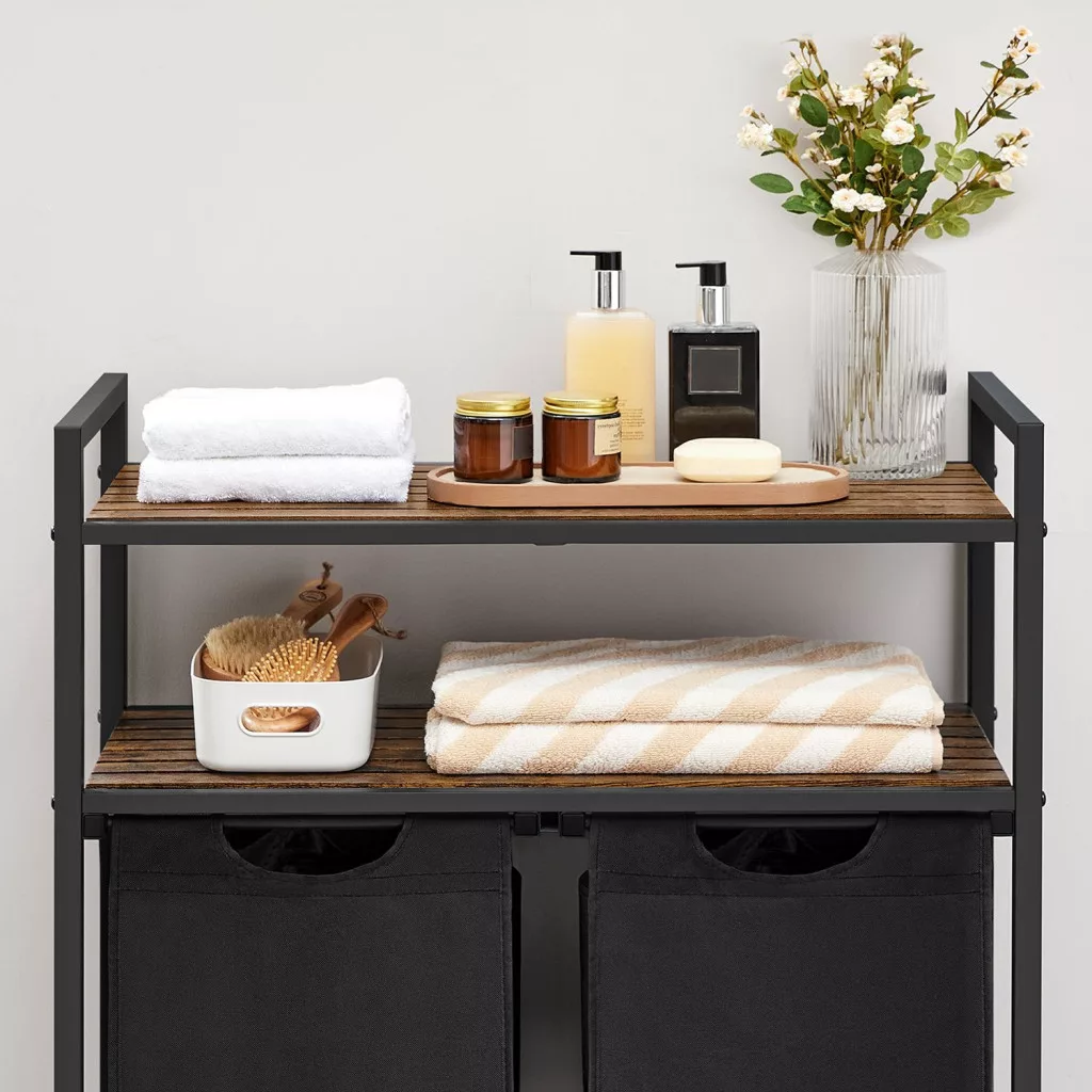 VASAGLE Ipari Szennyestartó Szekrény Kihúzható Tárolókkal Rusztikus Barna-Fekete