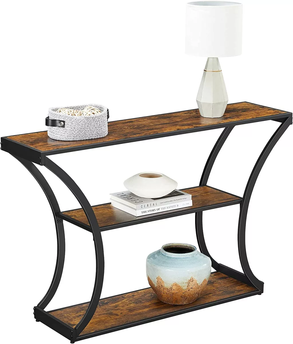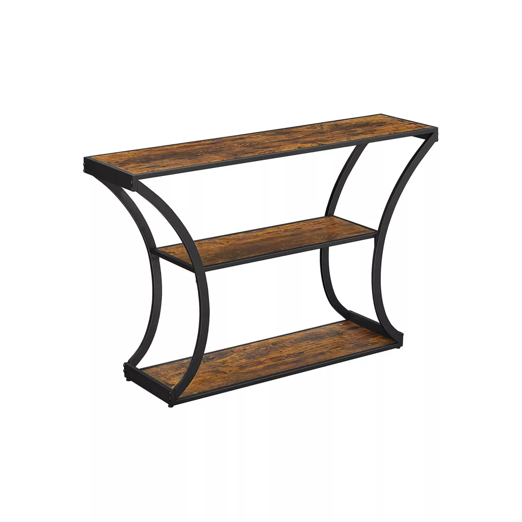 Ez a VASAGLE konzolasztal tökéletesen ötvözi a funkcionalitást és az esztétikumot. Az íves fekete fémváz és a vintage barna faborítás harmonikus kombinációja modern ipari stílust kölcsönöz a bútornak. A három polcos kialakítás bőséges helyet biztosít dekorációs tárgyak, könyvek vagy mindennapi használati eszközök tárolására.