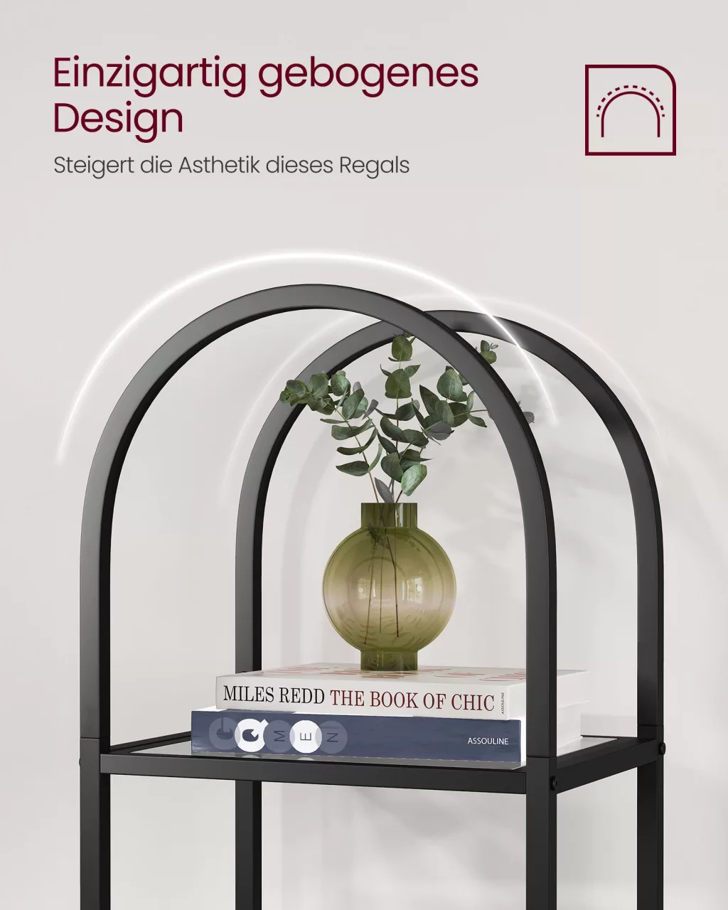 VASAGLE Íves Üvegpolc Rendszer Fekete Acél Vázzal