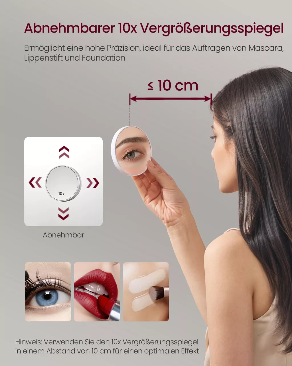 • Páramentesítő funkció és 10x-es nagyító tükör a professzionális szépségápolási rutinhoz