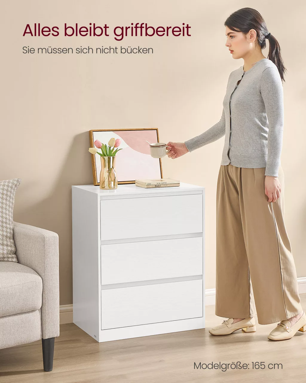 Rendelje meg még ma a VASAGLE KAILYN fiókos szekrényt, és teremtsen harmonikus rendet otthonában modern stílusban!