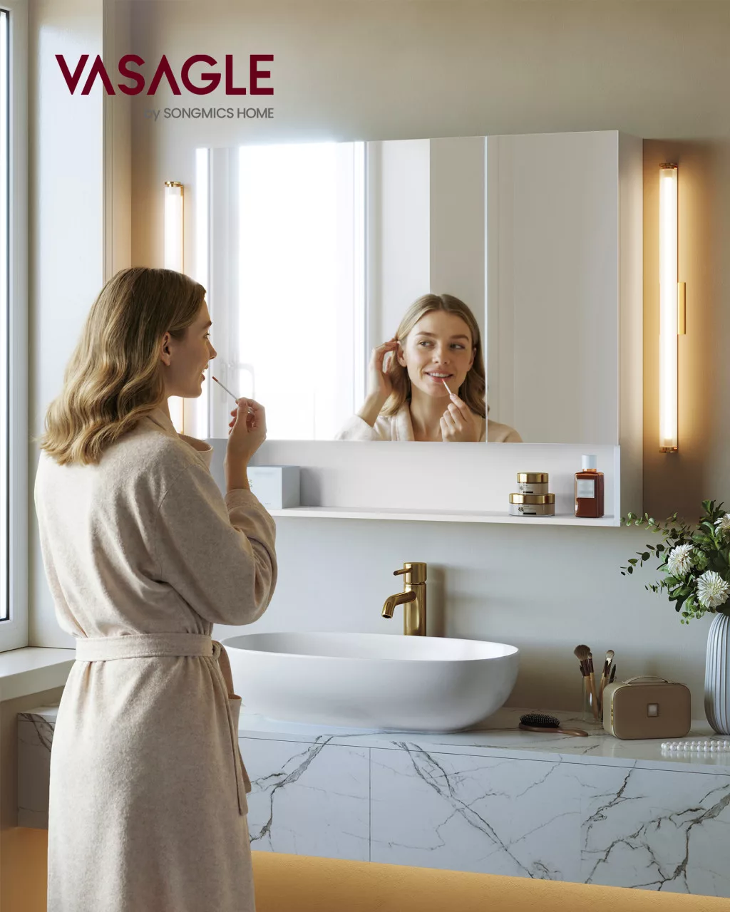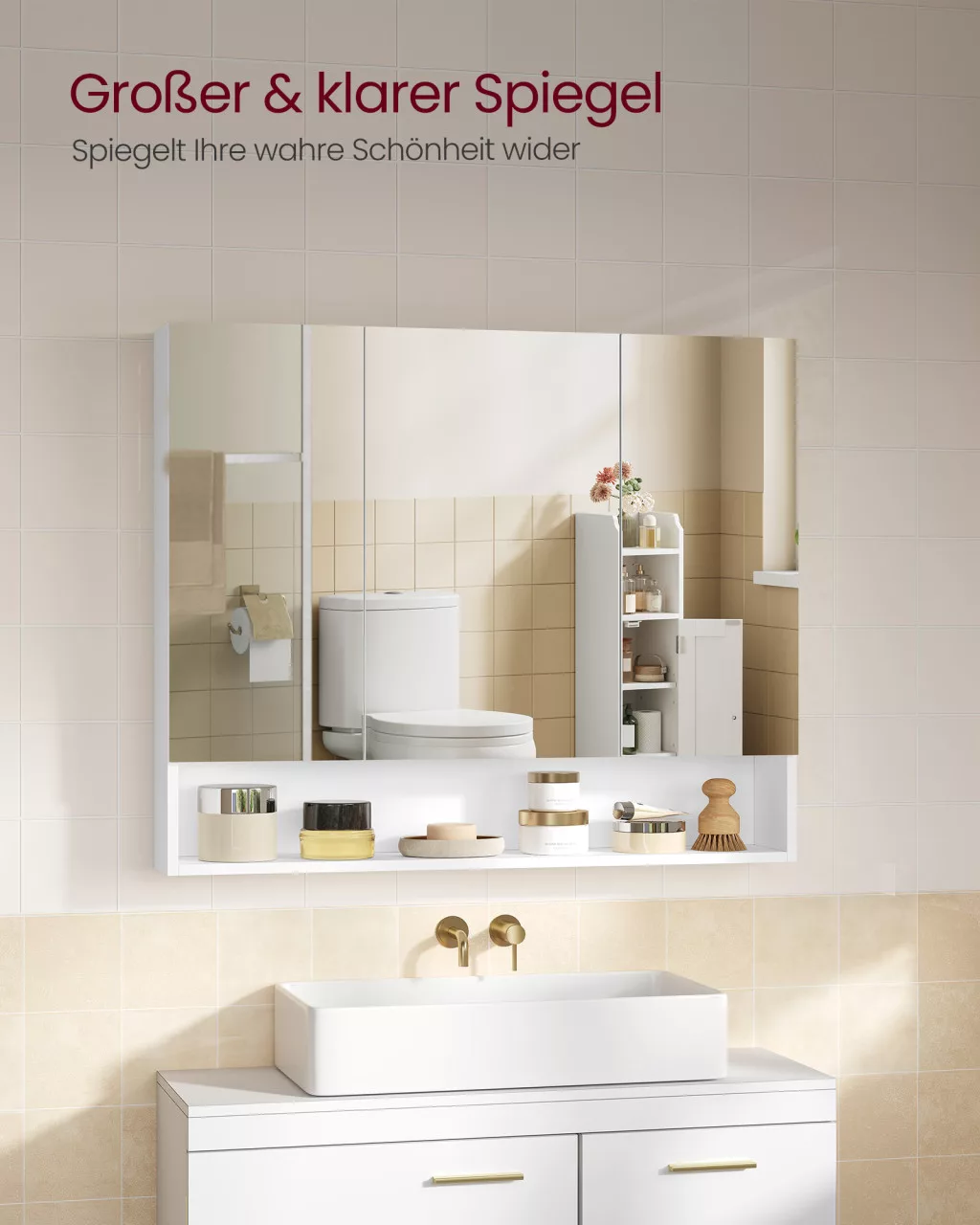 Varázsolja át fürdőszobáját a VASAGLE KAILYN tükrös szekrénnyel! Rendelje meg még ma, és élvezze a stílusos tárolás és a praktikus funkcionalitás előnyeit!