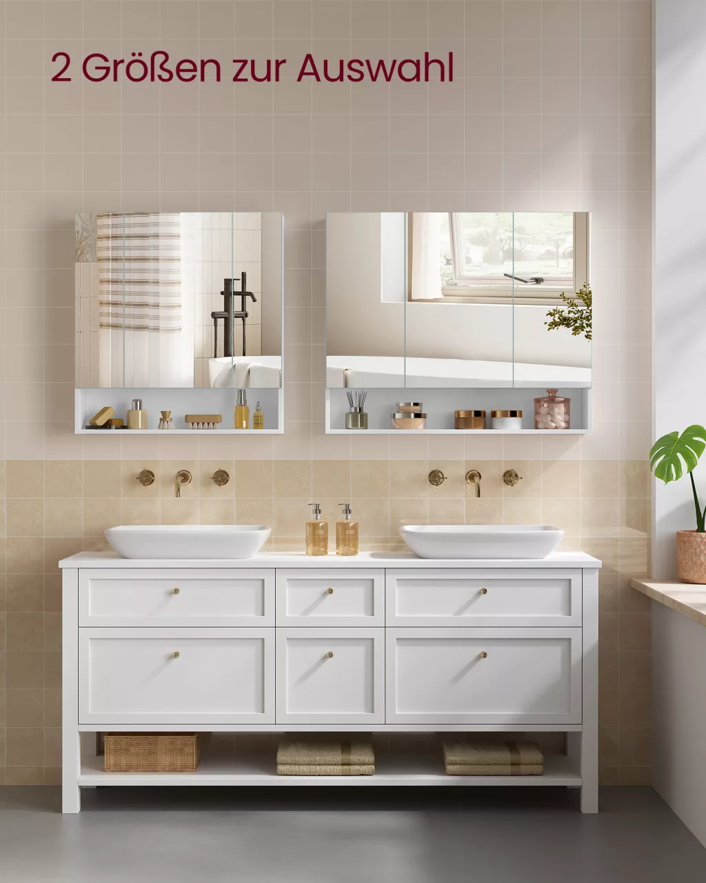 • Fogantyú nélküli tükrös ajtók: Letisztult, elegáns megjelenés, amely modern karaktert kölcsönöz a fürdőszobának, miközben könnyen nyitható