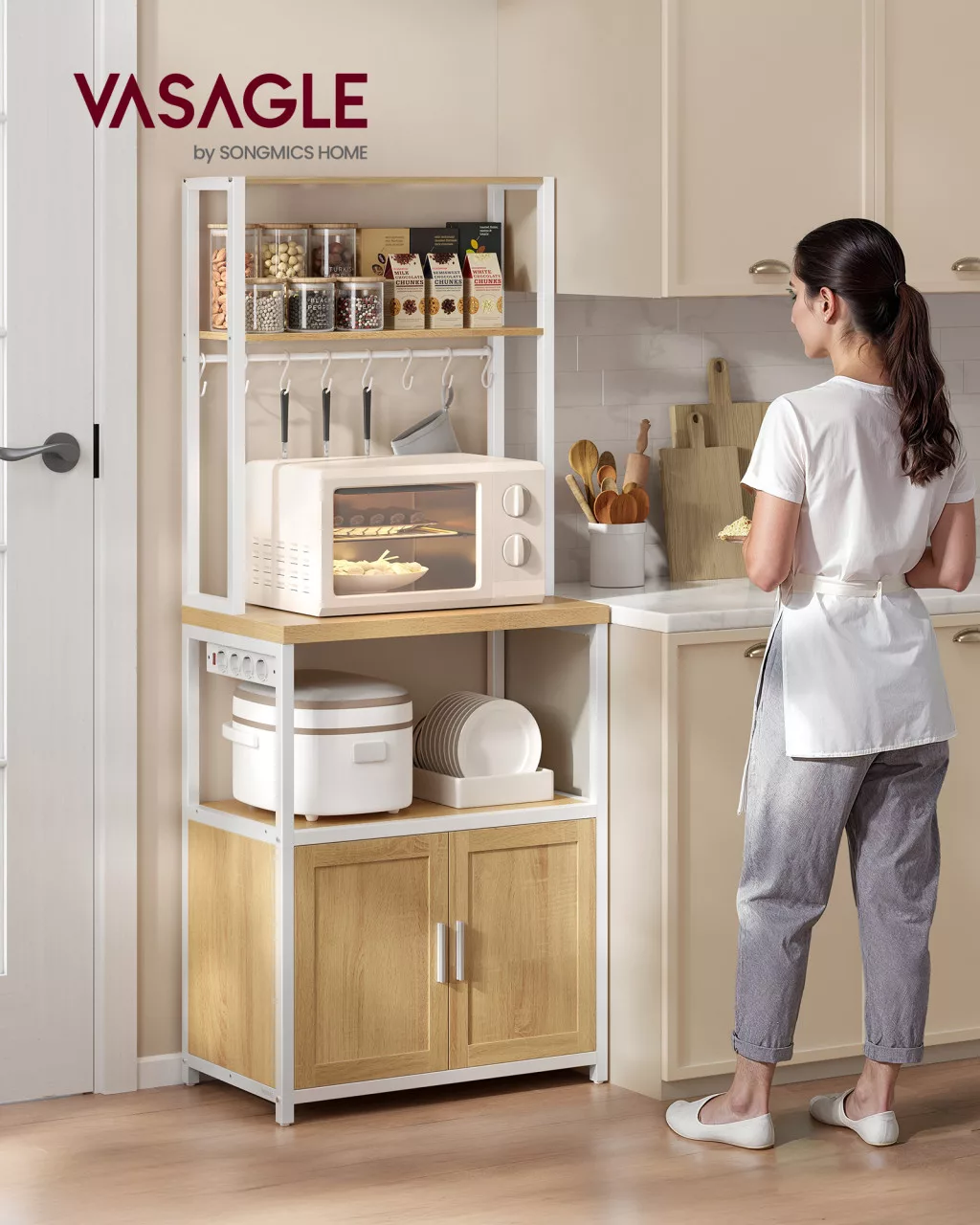 VASAGLE KKS058Y02 konyhai polcrendszer beépített elosztóval aranytölgy és felhőfehér