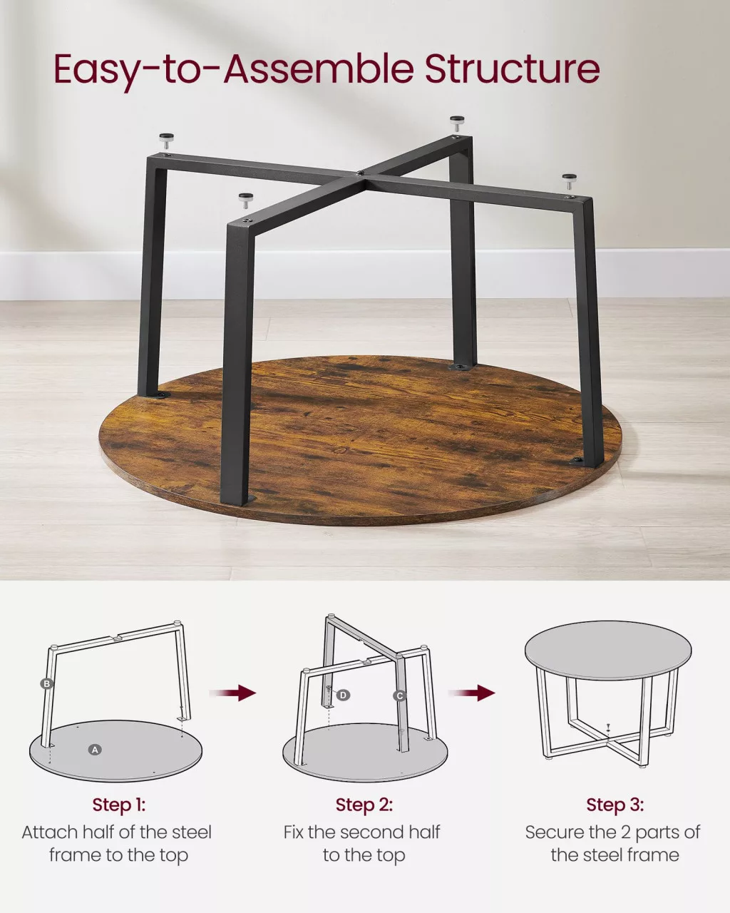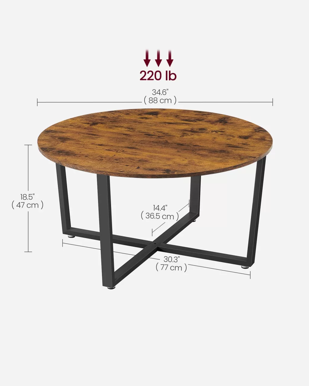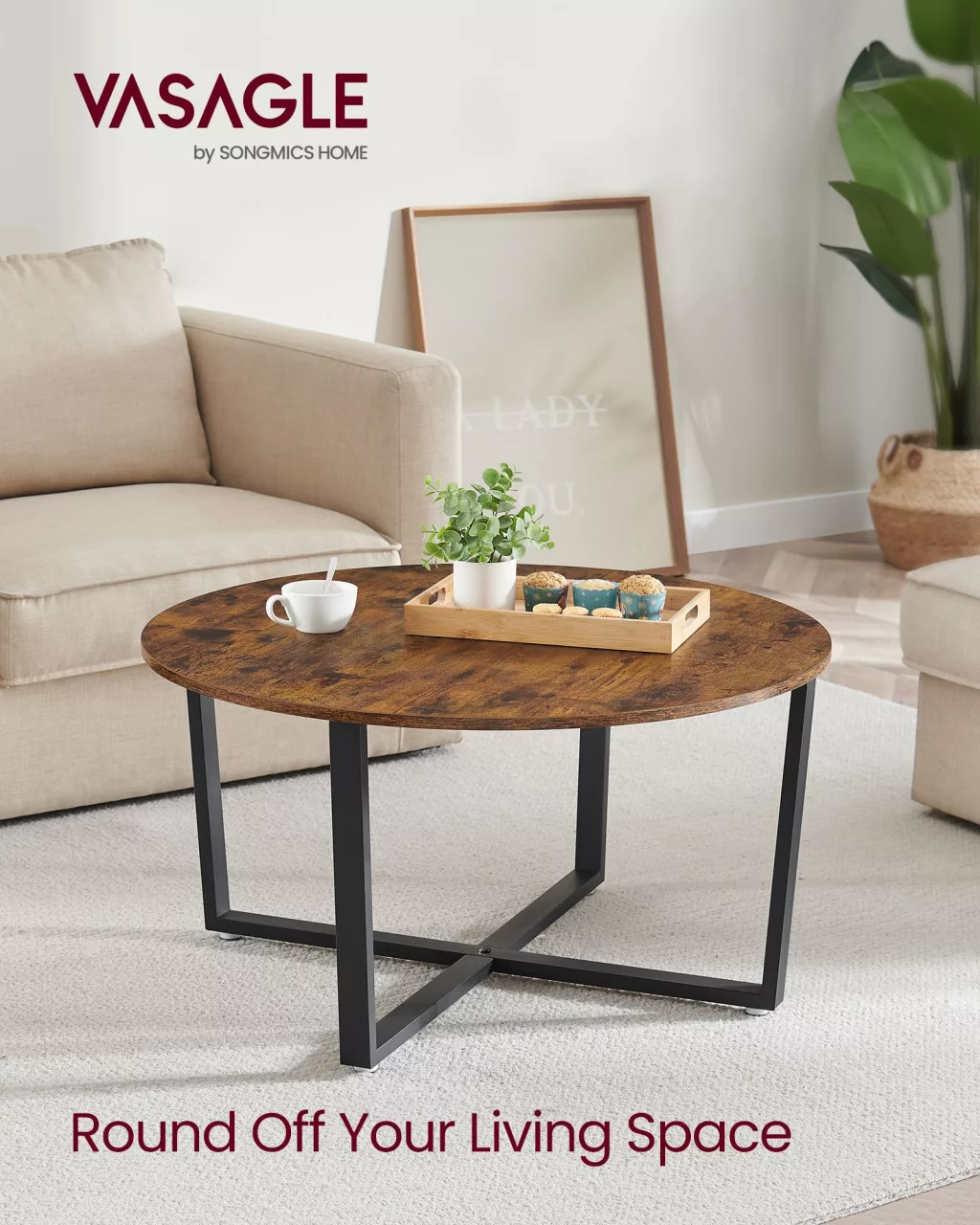 Ez a VASAGLE dohányzóasztal tökéletesen ötvözi a modern ipari stílust a praktikussággal. A 88 cm átmérőjű rusztikus barna asztallap és a matt fekete acél lábszerkezet harmonikus összhangot teremt, miközben a keresztben futó lábak extra stabilitást biztosítanak.