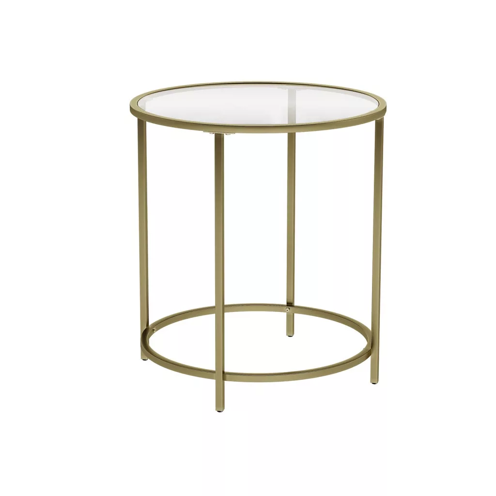 VASAGLE Kerek Üveg Kisasztal Arany Fémvázzal