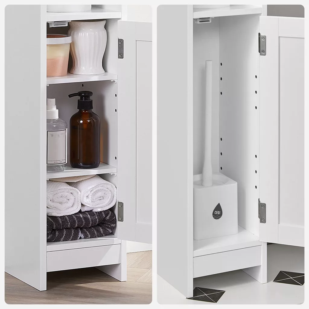 VASAGLE Keskeny Fürdőszobai Szekrény Állítható Polcokkal Fehér