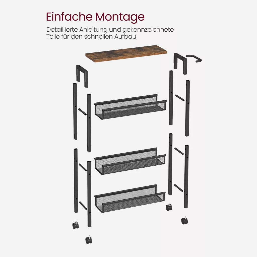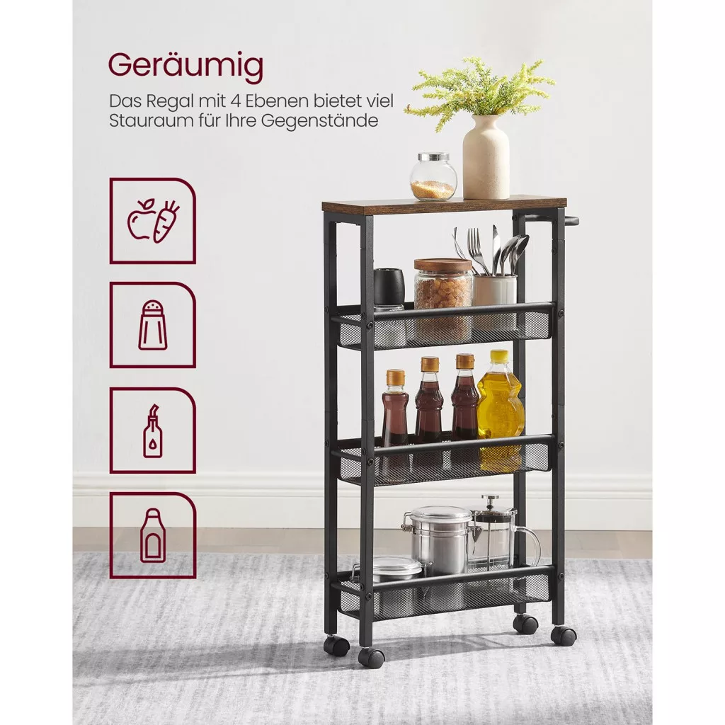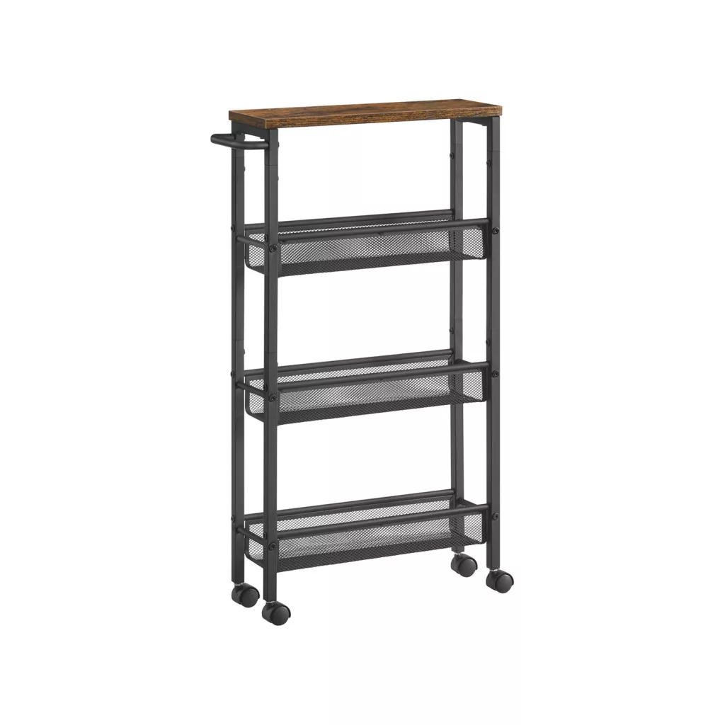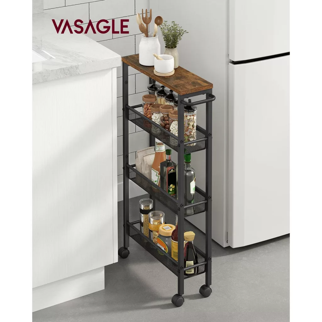 VASAGLE Keskeny Gurulós Konyhai Állvány 4 Szintes Vintage Barna-Fekete