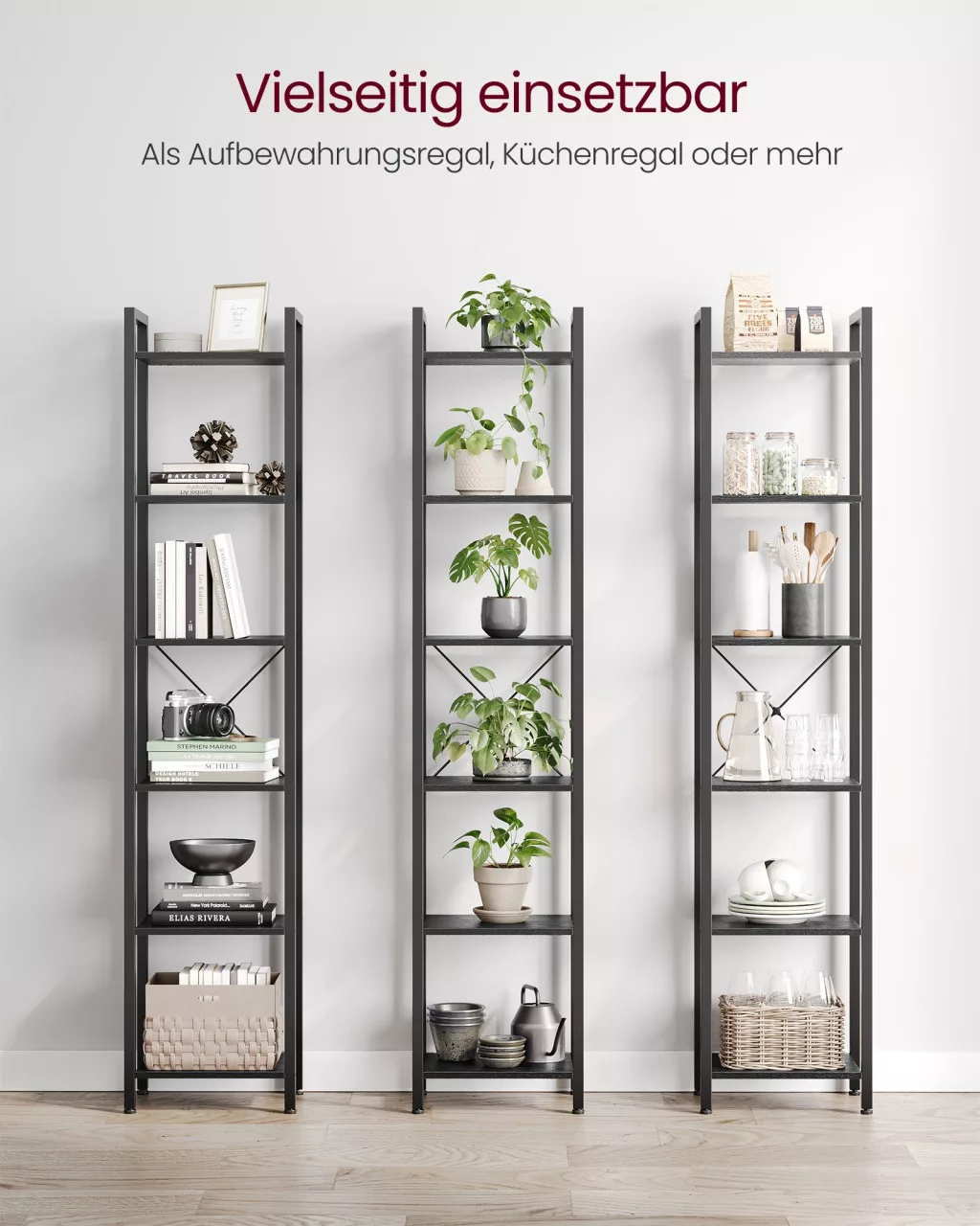 VASAGLE Keskeny Ipari Könyvespolc 6 Szintes Fekete