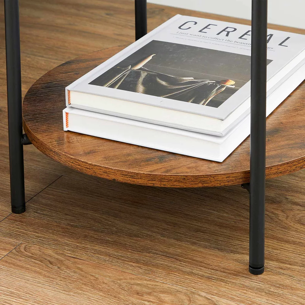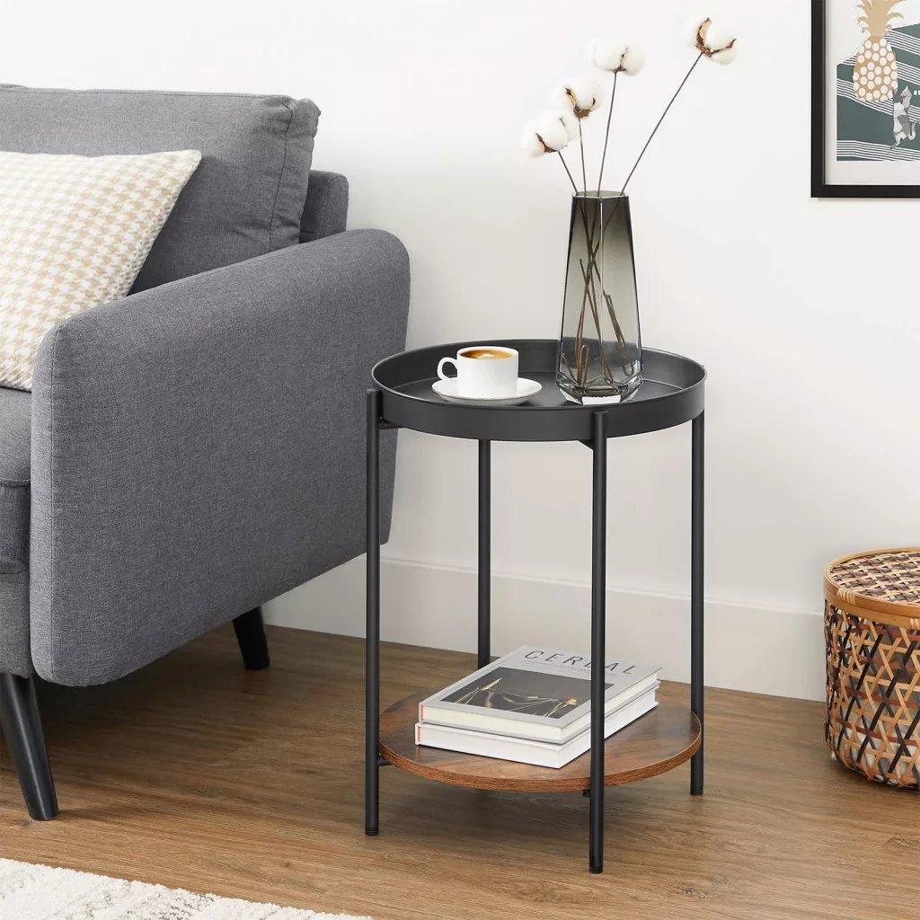 VASAGLE Kétrétegű Kisasztal Levehető Tálcával Rusztikus Barna-Fekete