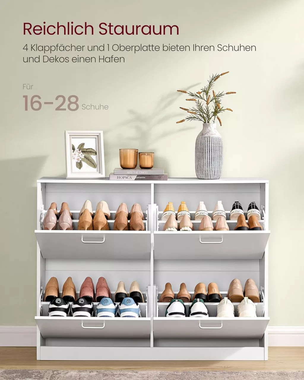 VASAGLE Kompakt Cipősszekrény 4 Billenő Ajtóval Hófehér