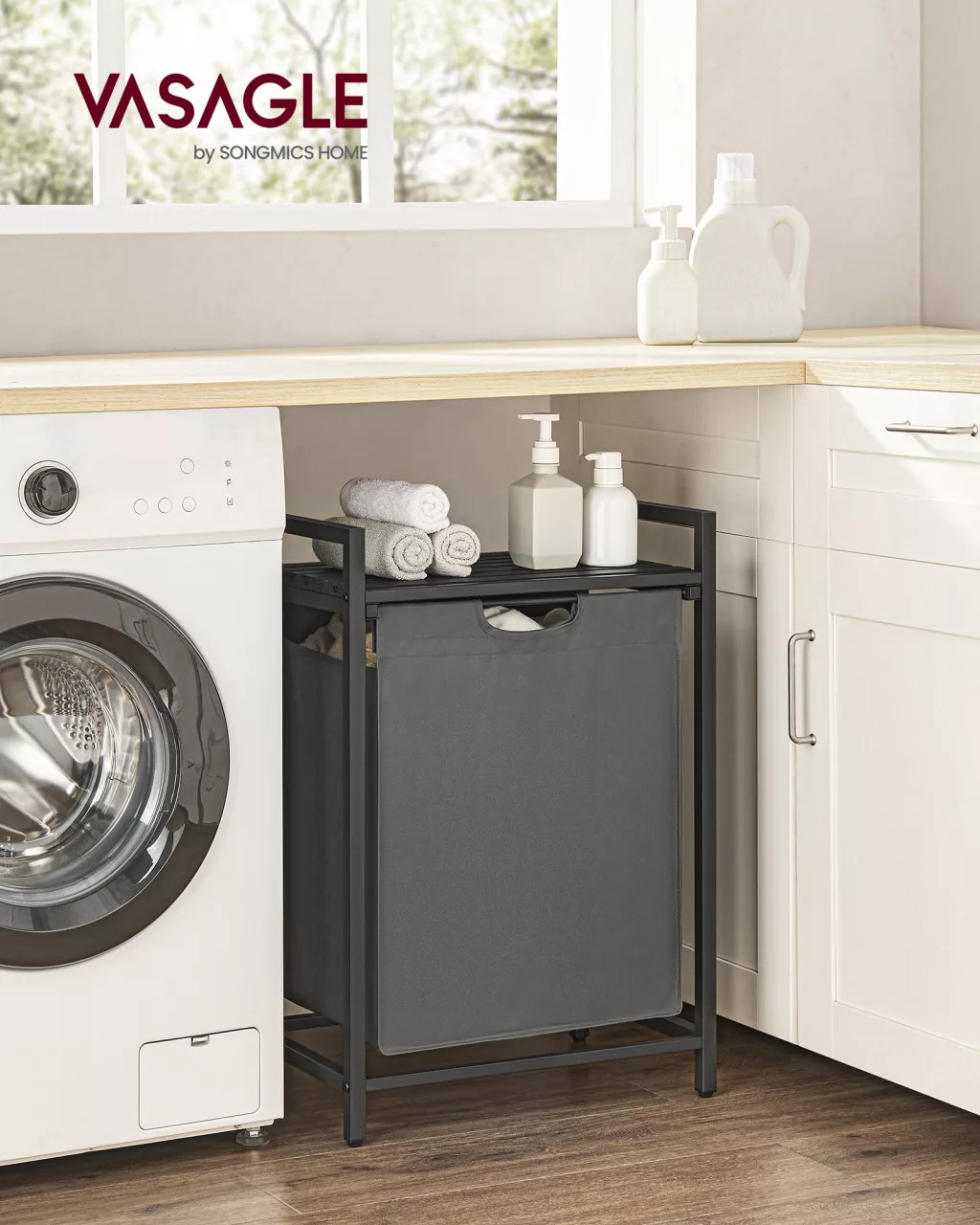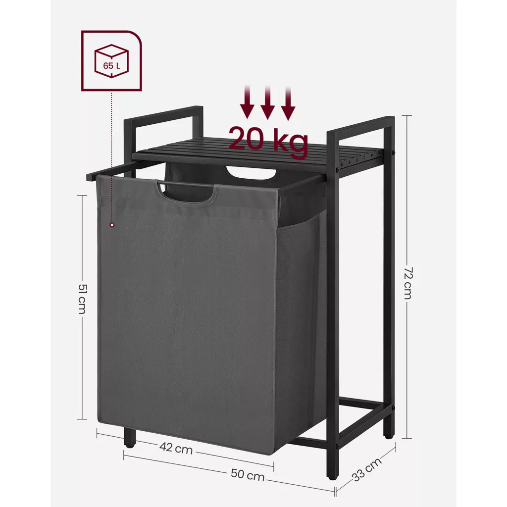 VASAGLE Kompakt Szennyestartó Polccal 65L Fekete-Szürke