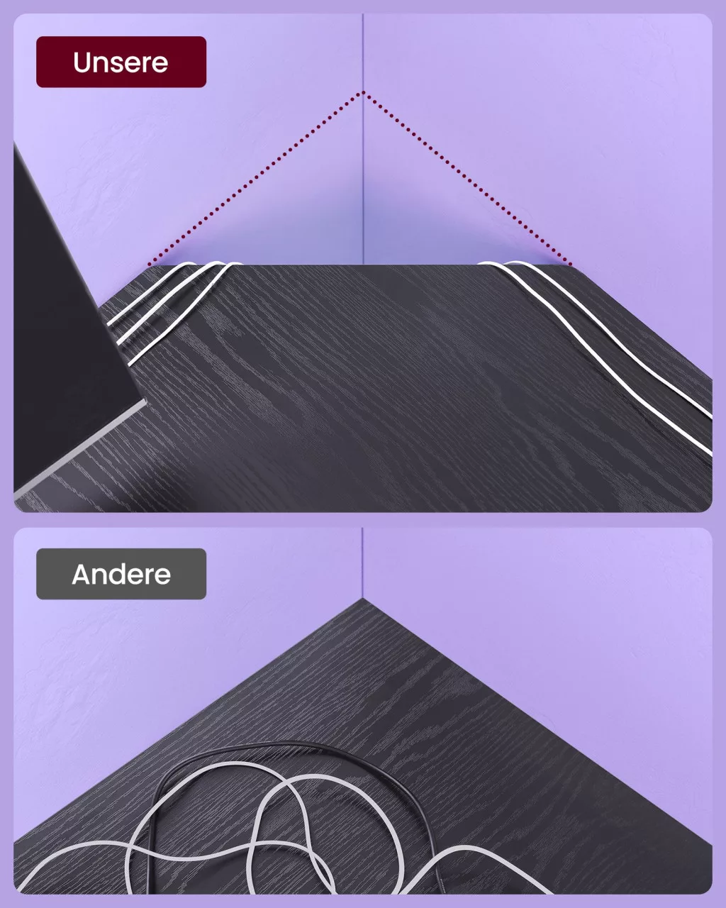 • Praktikus kábelrendező megoldás a sarokban a rendezett megjelenésért