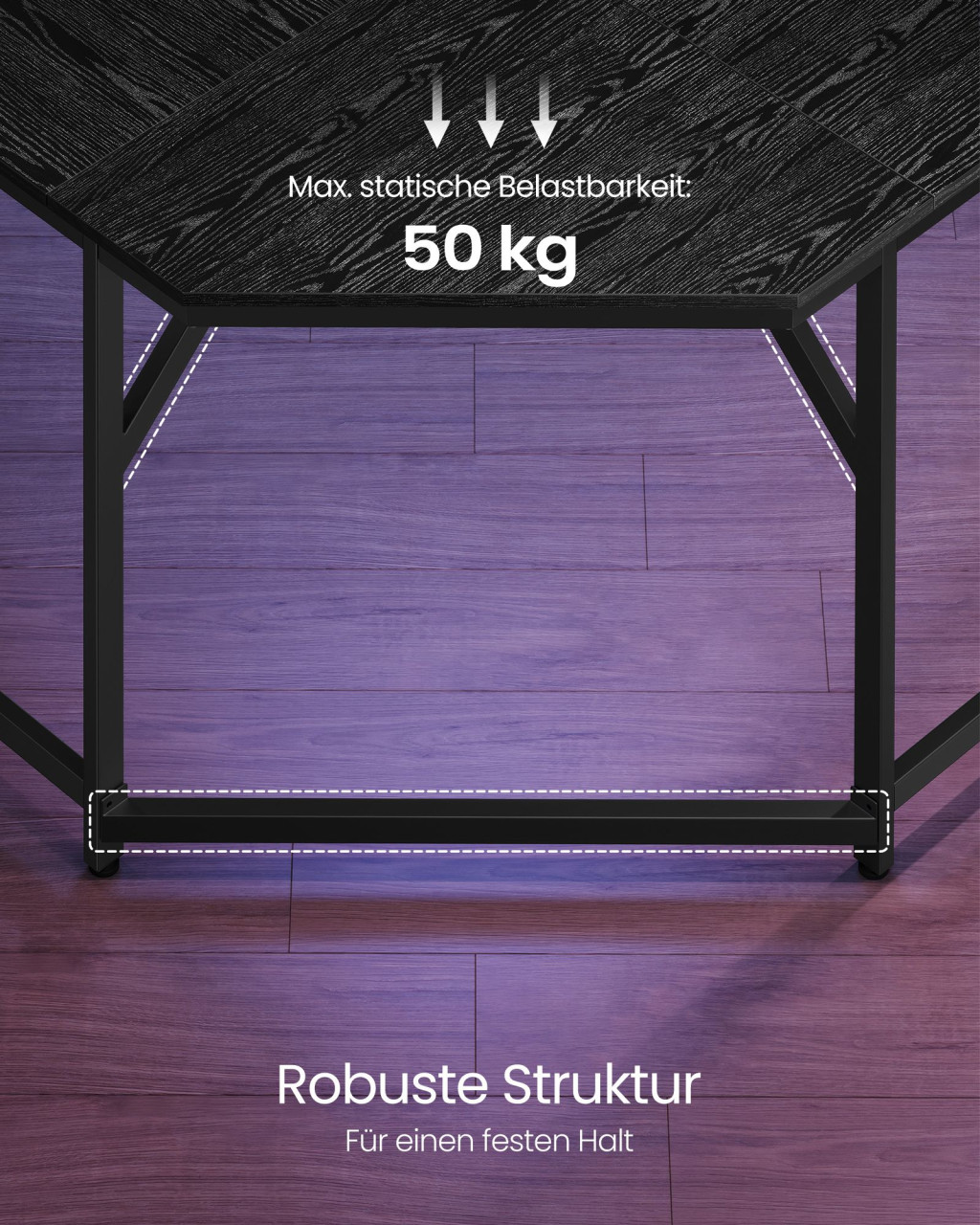 • Stabil acél váz és faforgácslap konstrukció 50 kg teherbírással
