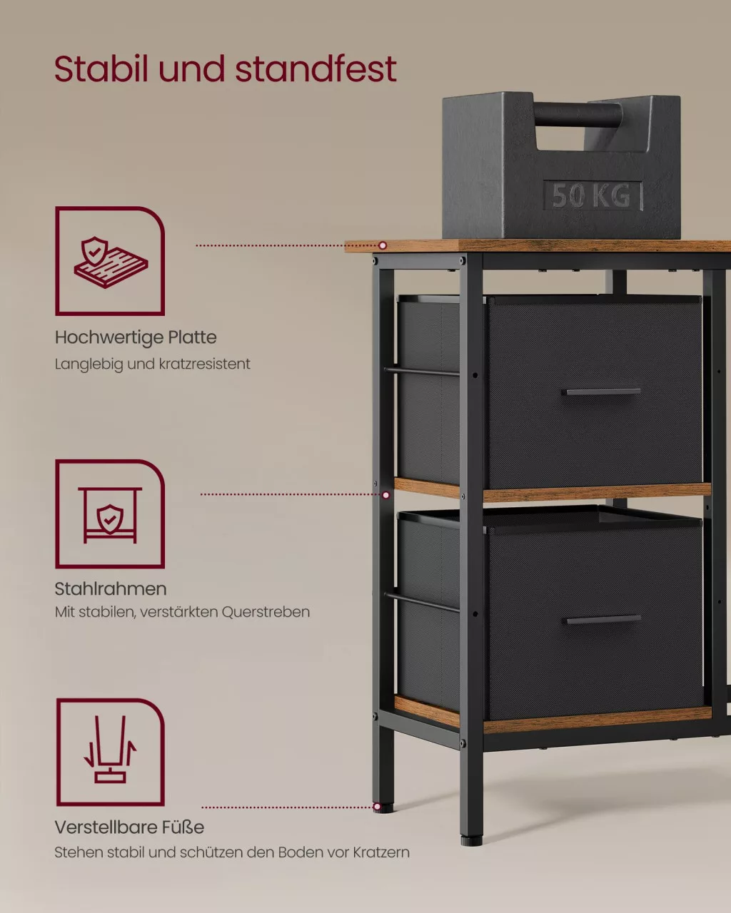 Az asztal különlegessége, hogy a fiókok tetszés szerint a bal vagy jobb oldalon helyezhetők el, így bármilyen sarokba tökéletesen illeszkedik. A stabil acélváz és a megerősített kereszttartók garantálják a biztonságos használatot.