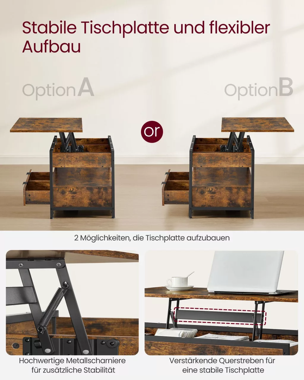 VASAGLE LCT209K01 dohányzóasztal emelhető asztallappal rusztikus barna és tintafekete