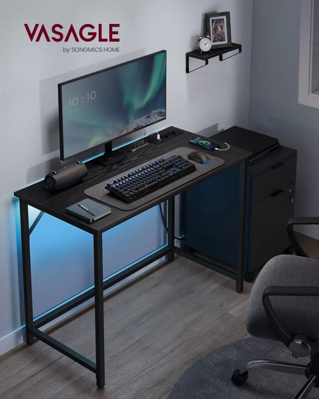 VASAGLE LED Gaming Íróasztal Kompakt Fekete