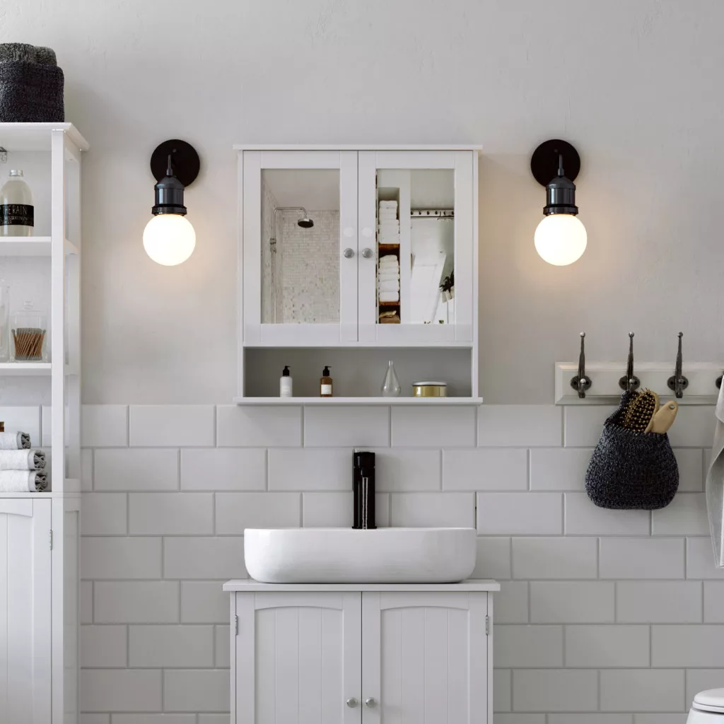 VASAGLE LHC002 fali fürdőszoba szekrény tükrös ajtókkal fehér