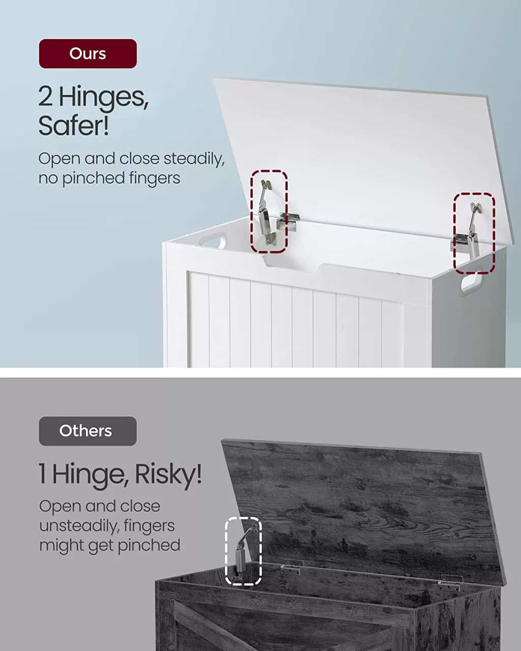 A biztonságos használatot a speciális zsanérok garantálják, amelyek megakadályozzák a fedél hirtelen lecsapódását. Az oldalsó fogantyúk és az U alakú kivágás megkönnyítik a pad mozgatását és használatát.