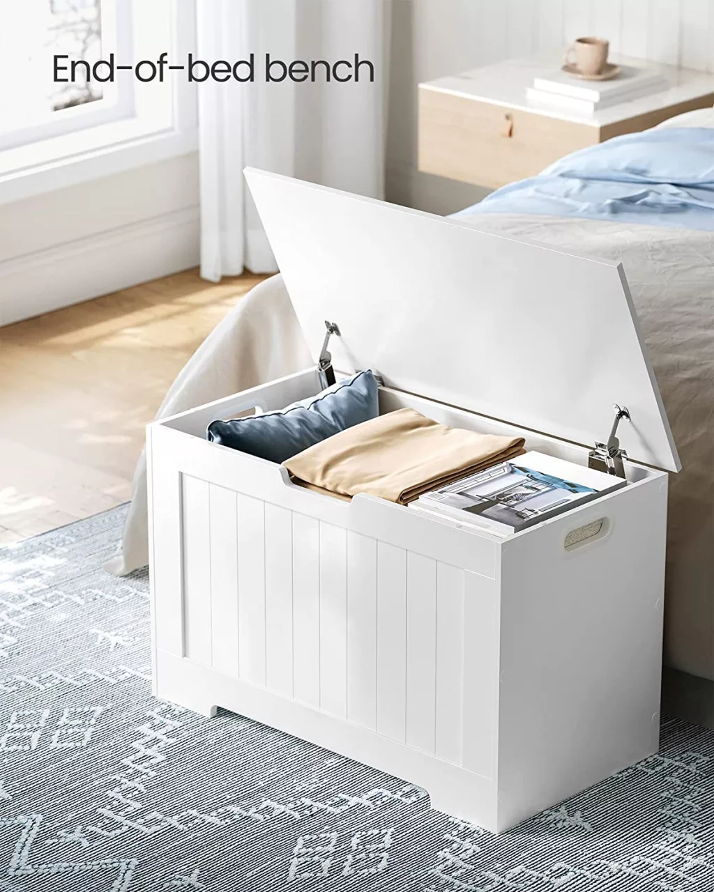 VASAGLE LHS11WT Tárolópad Fehér Faforgácslap Ülőke Nagy Tárolókapacitással