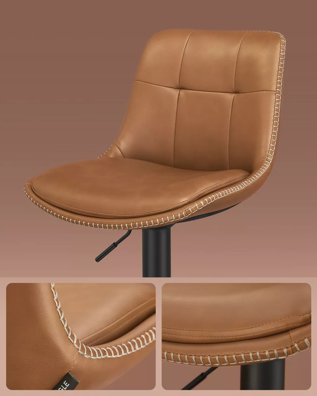 VASAGLE LJB095K01 bárszék 2 db-os szett magasságállítható forgó konyhai szék steppelt PU borítással háttámlával és lábtartóval karamell barna