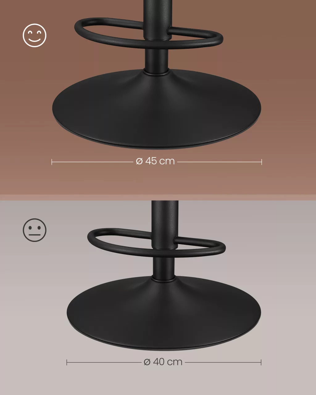 • Robusztus acélváz konstrukció: A krómozott acélváz és a 45 cm átmérőjű stabil talp 120 kg terhelhetőséget biztosít, garantálva a hosszú élettartamot és a biztonságos használatot