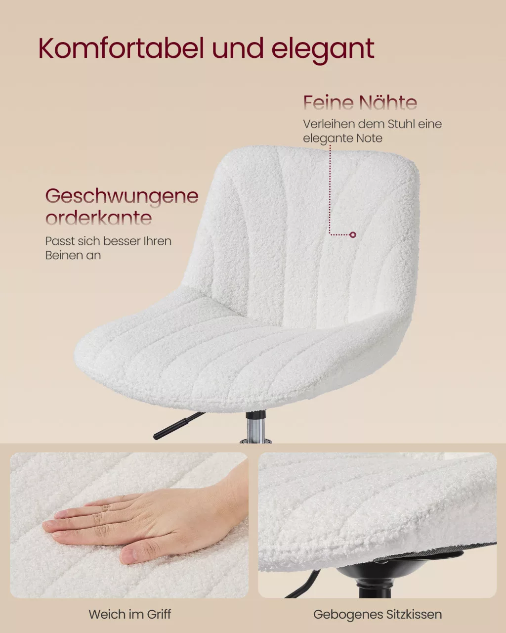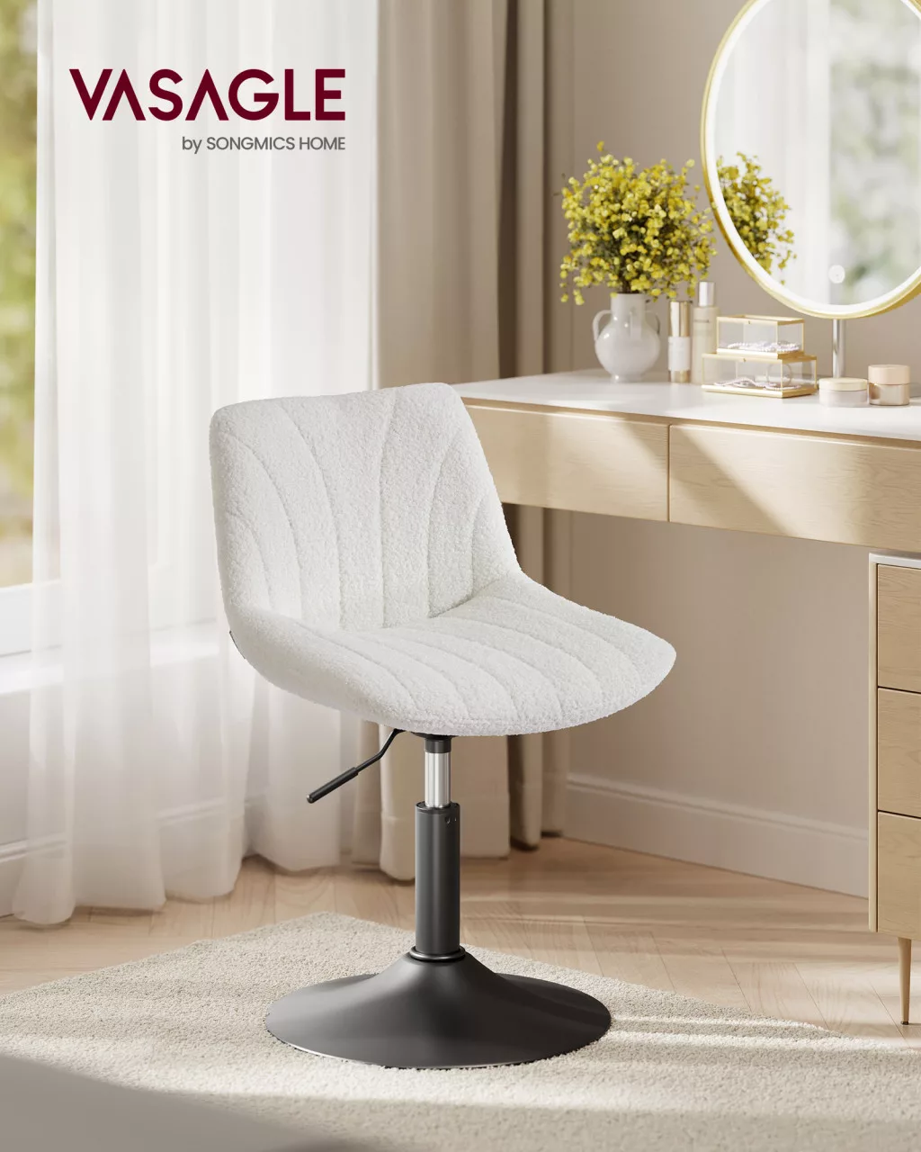 VASAGLE LJB160WD01 fésülködő szék támlával magasságállítható 360° forgatható sherpa huzat krémfehér