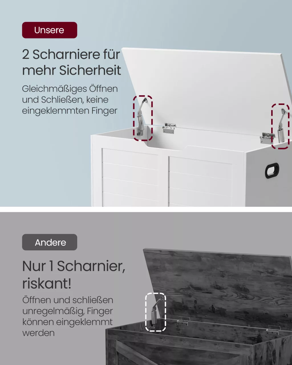 • Biztonságos használat: A két minőségi biztonsági zsanér lehetővé teszi, hogy a fedél bármilyen szögben stabilan nyitva maradjon, megvédve az ujjakat a becsípődéstől