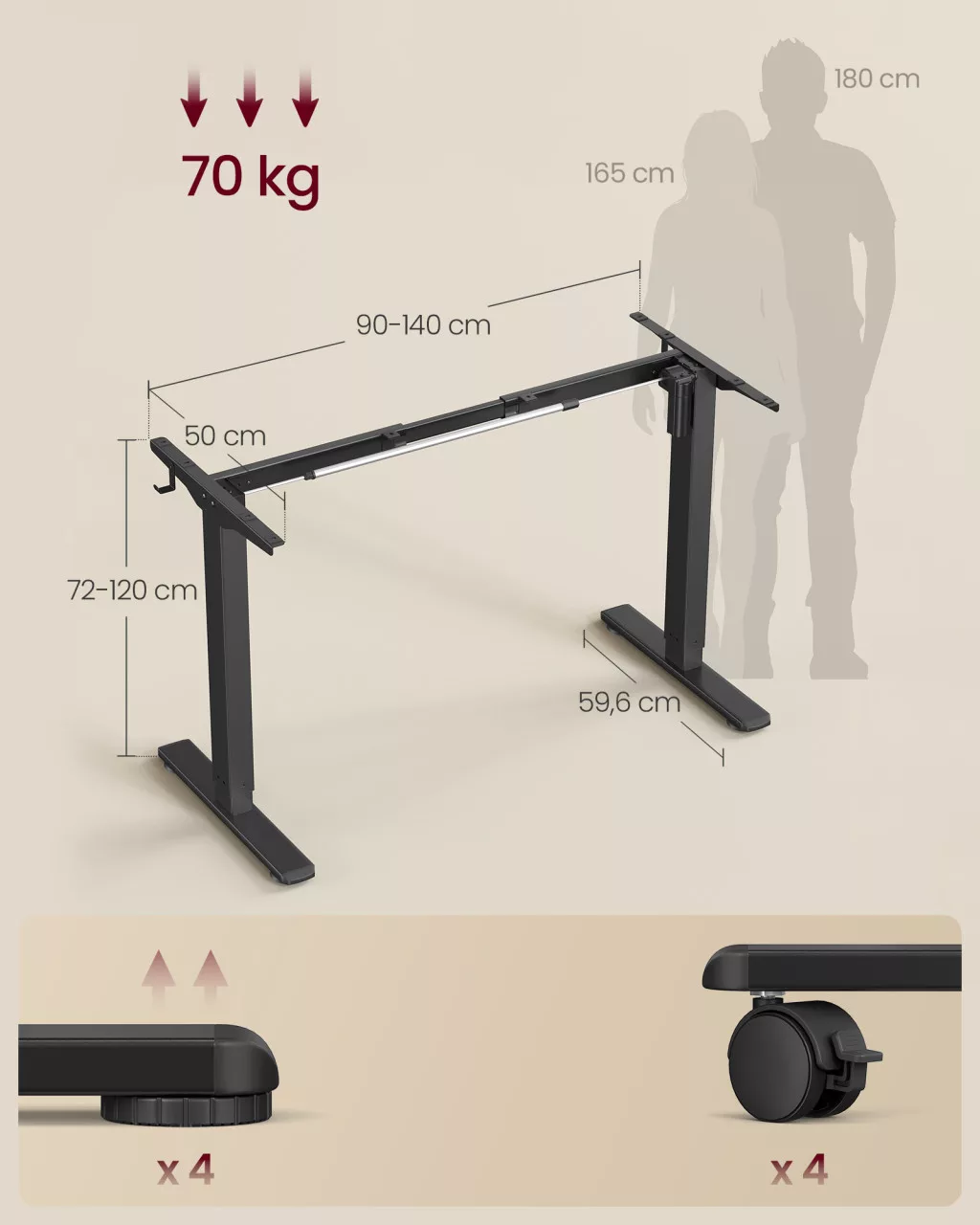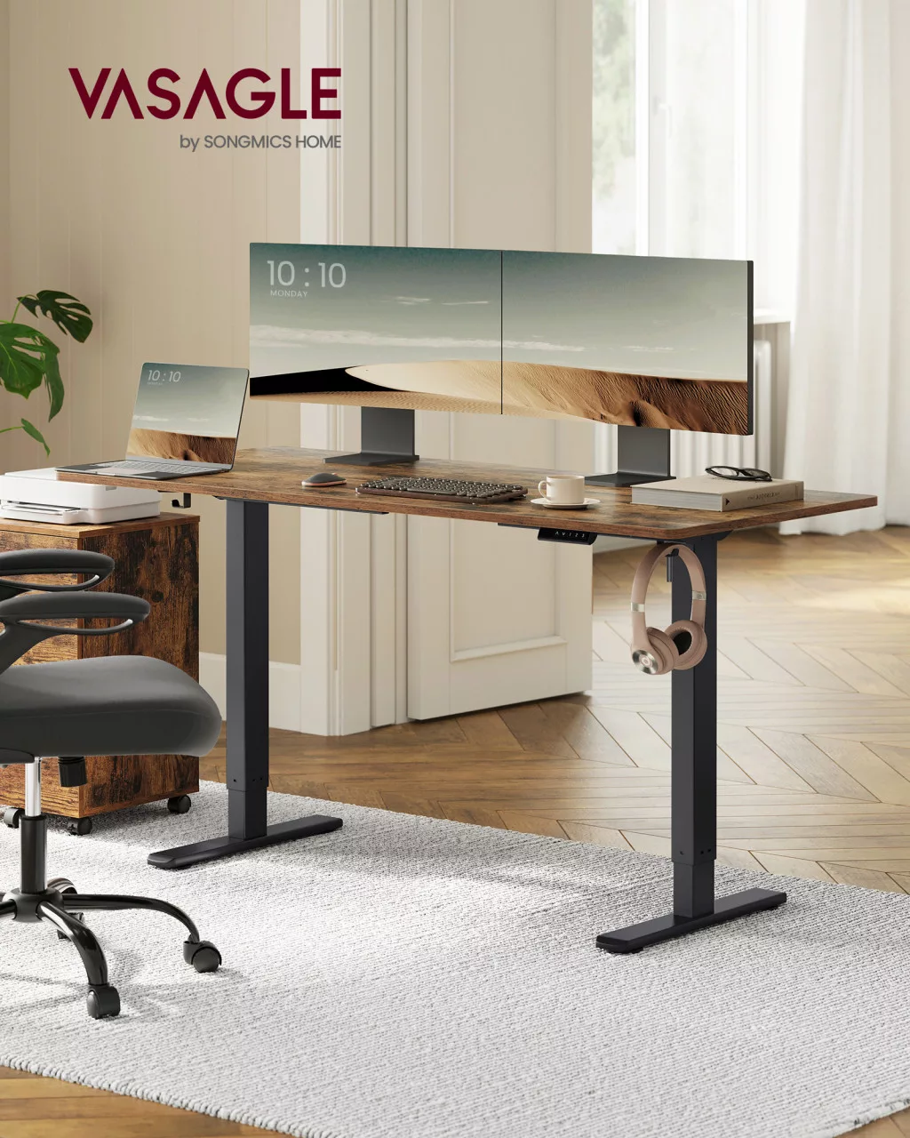 VASAGLE LSD021B01 Elektromos Állítható Magasságú Asztalváz Acél Tintafekete