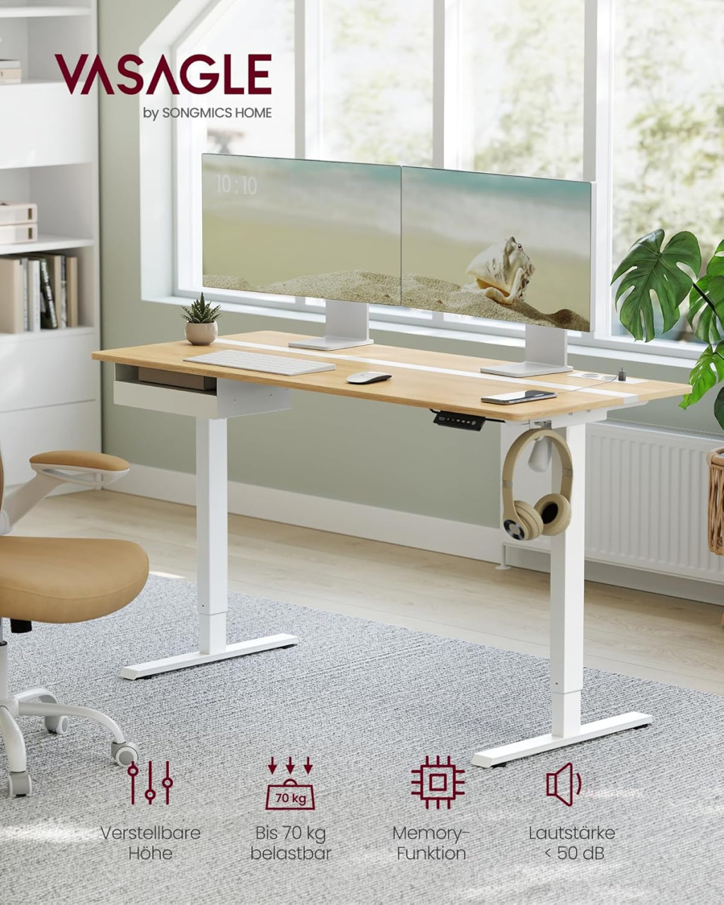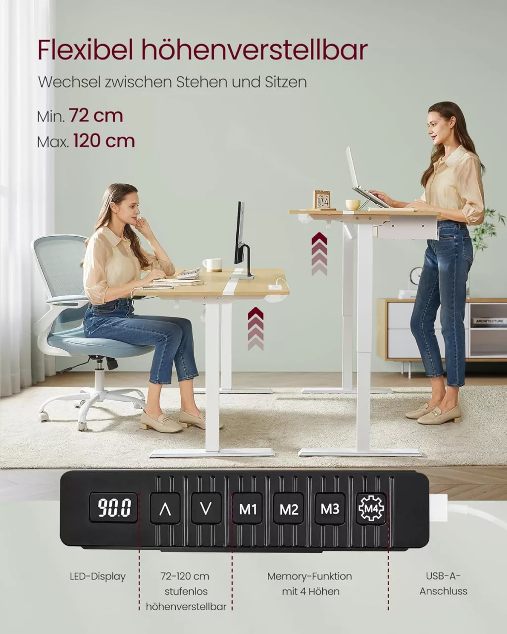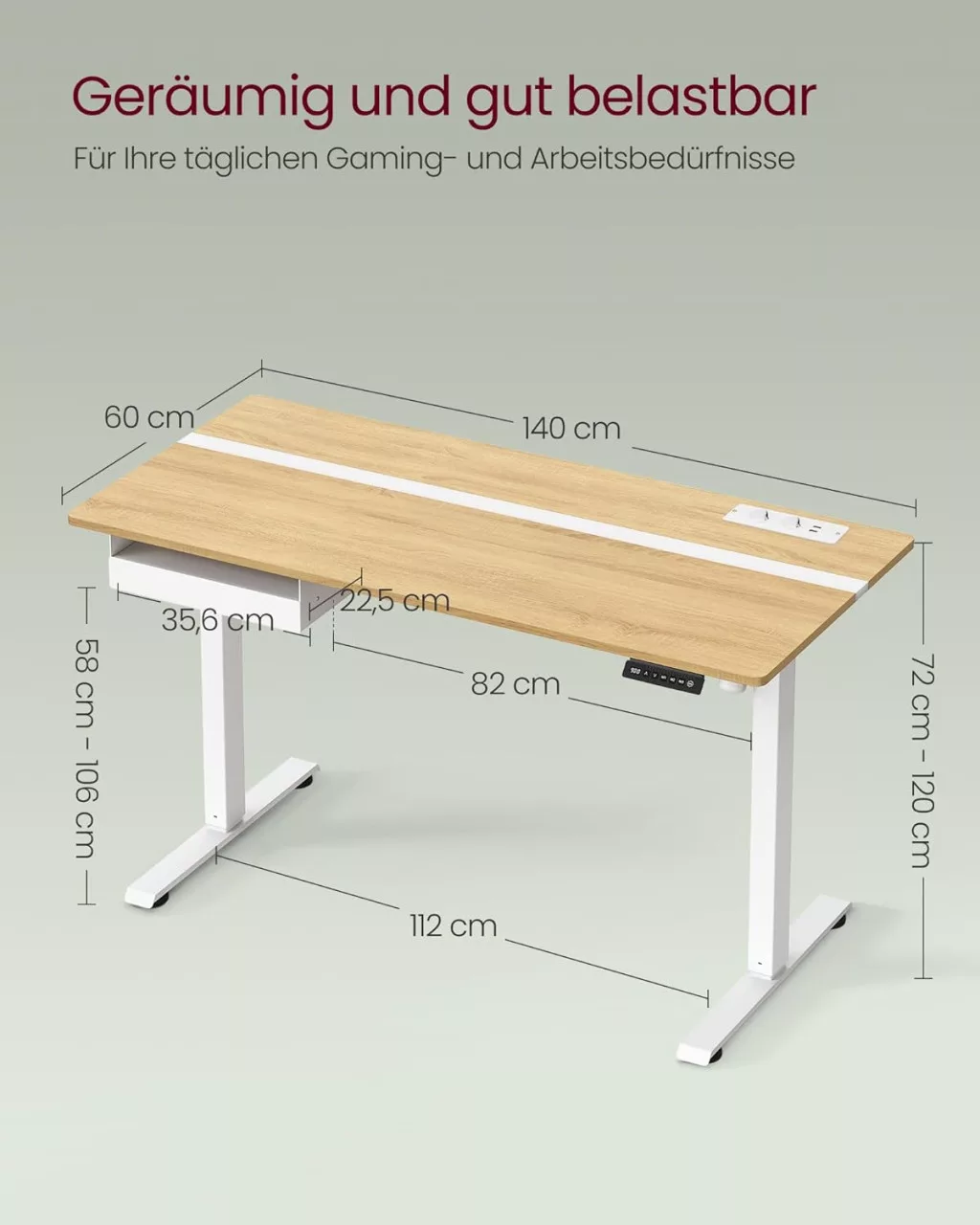 VASAGLE LSD114N01 Elektromos Állítható Magasságú Íróasztal Tölgy-Fehér