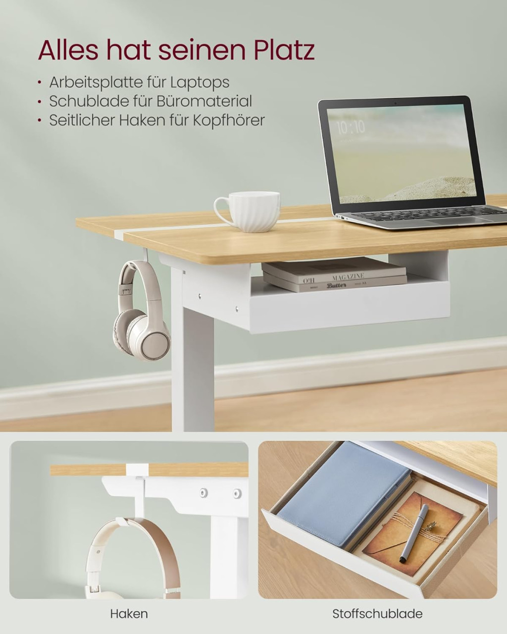 • Ergonomikus munkavégzés az elektromos magasságállításnak köszönhetően