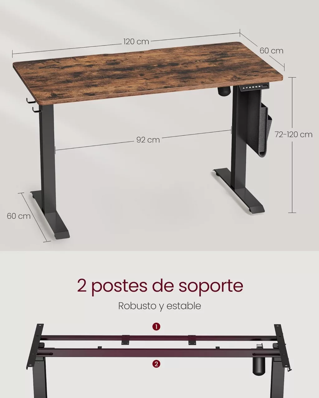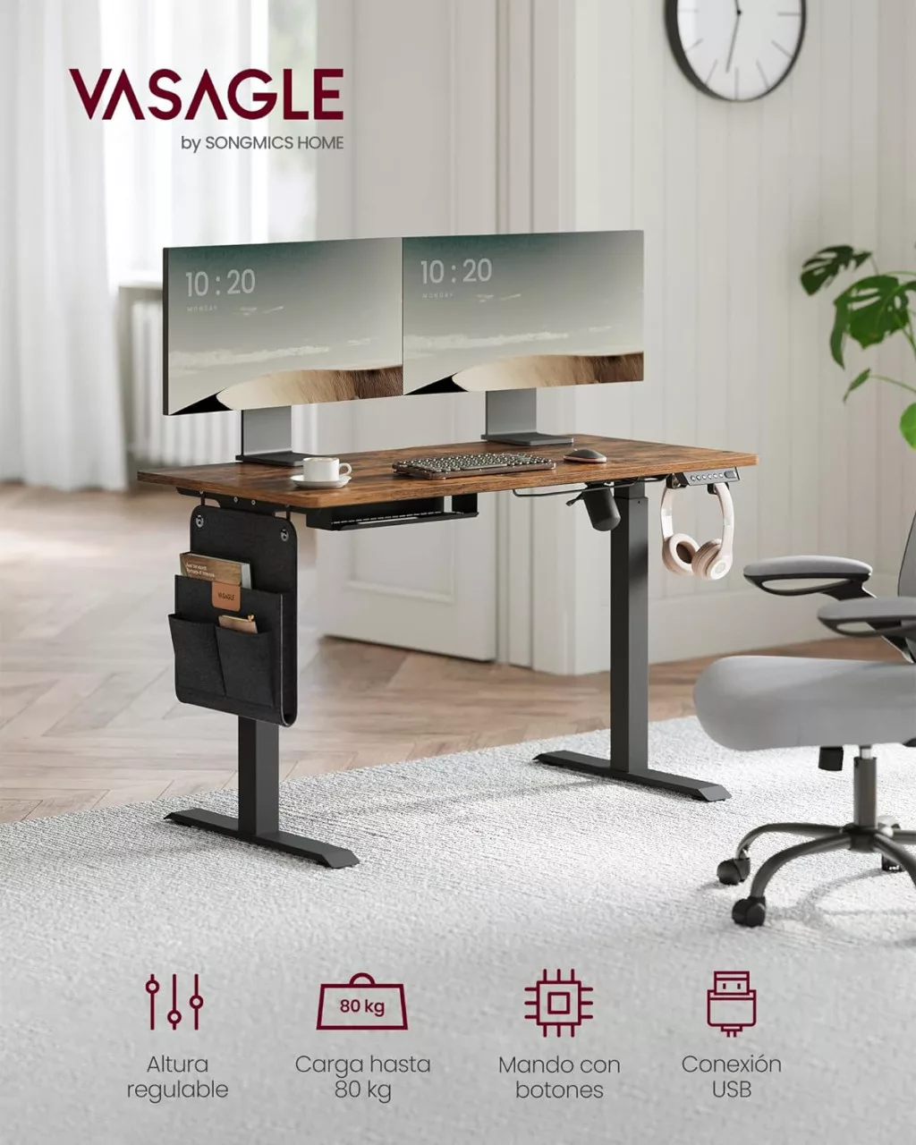 VASAGLE LSD172X01 Elektromos Állítható Magasságú Íróasztal Vintage Barna