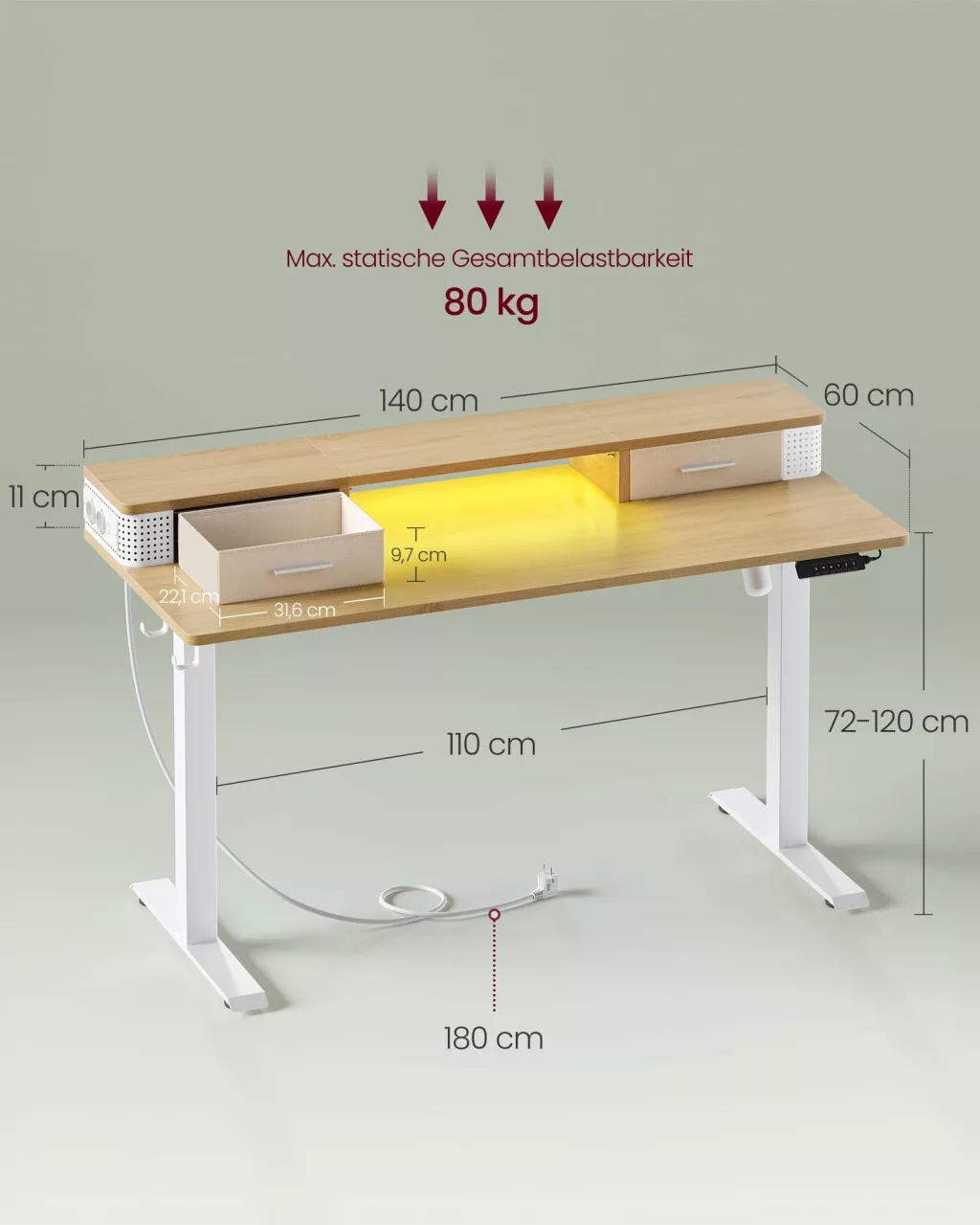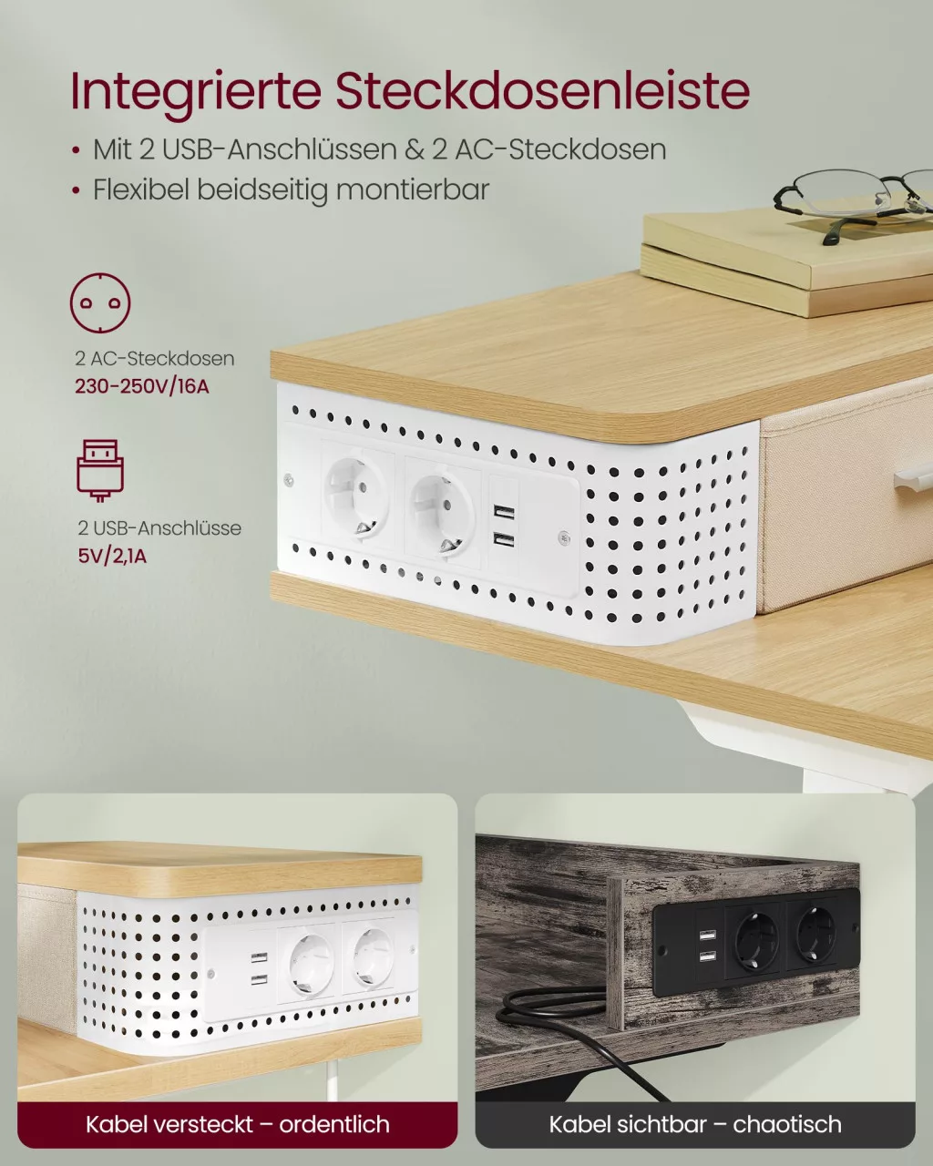 VASAGLE LSD184N01 Elektromos Állítható Magasságú Íróasztal Monitortartóval Szalmasárga