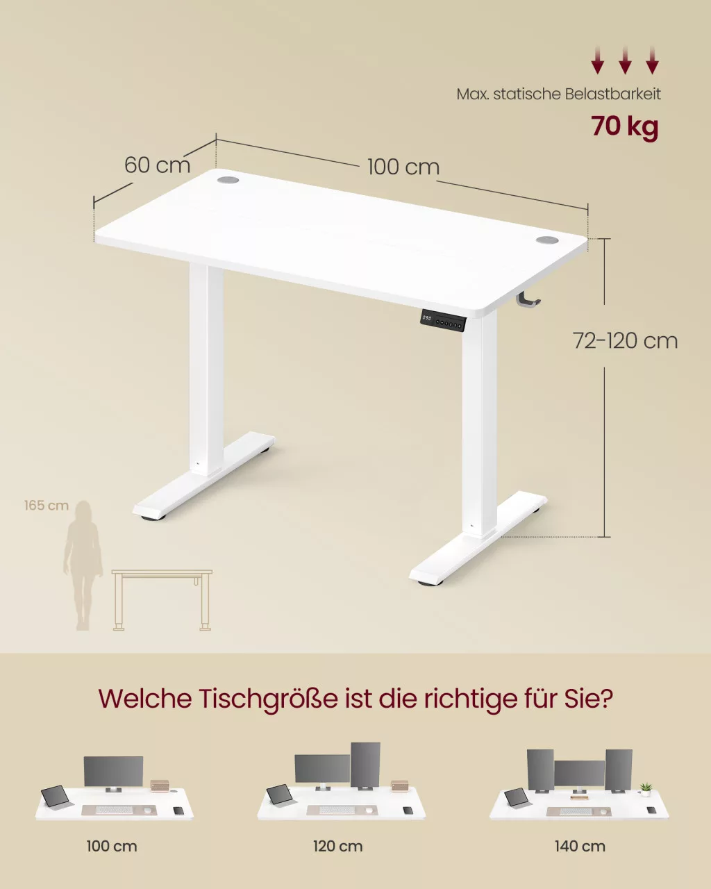 • Erősített acélváz 70 kg teherbírással: A masszív konstrukció biztosítja, hogy asztala stabil maradjon még több monitor, laptop és irodai eszköz esetén is, ingadozás nélkül