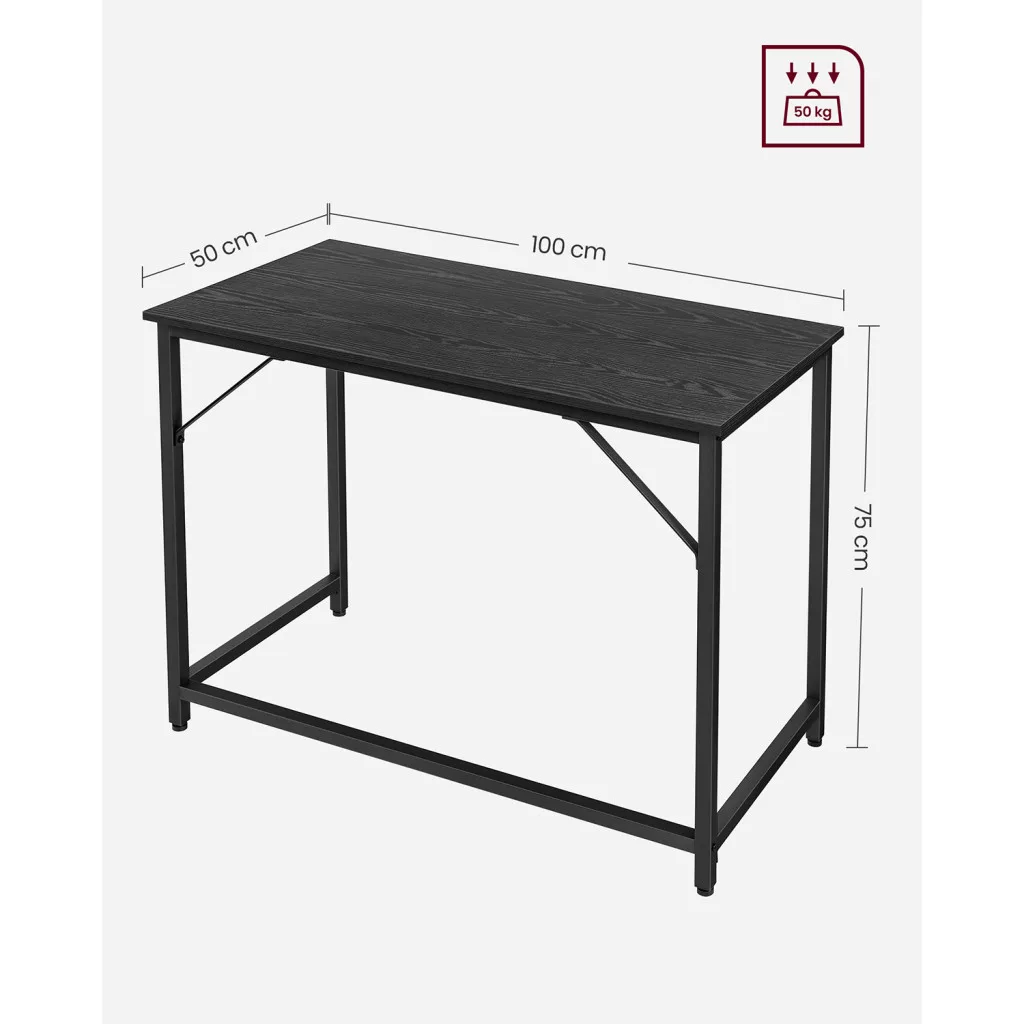 A VASAGLE kompakt számítógépasztala tökéletes megoldás kis terekbe, otthoni irodába vagy hálószobába. Ipari stílusú fekete kivitel, strapabíró fém vázzal és 50 kg teherbírással.