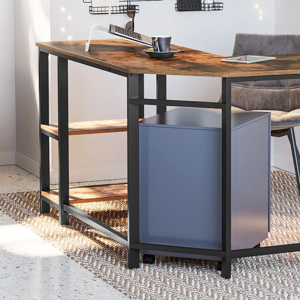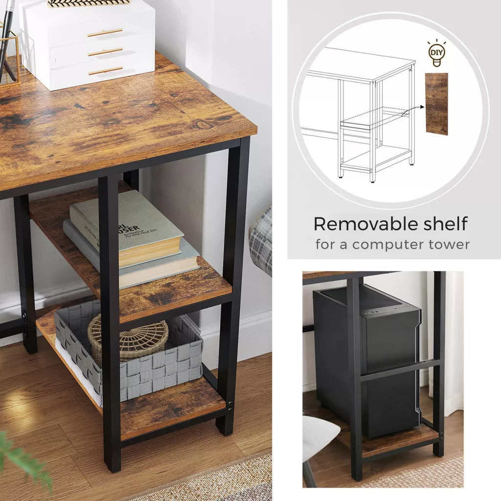 VASAGLE LWD72X L-alakú Sarokíróasztal Polcokkal Rusztikus Barna és Fekete