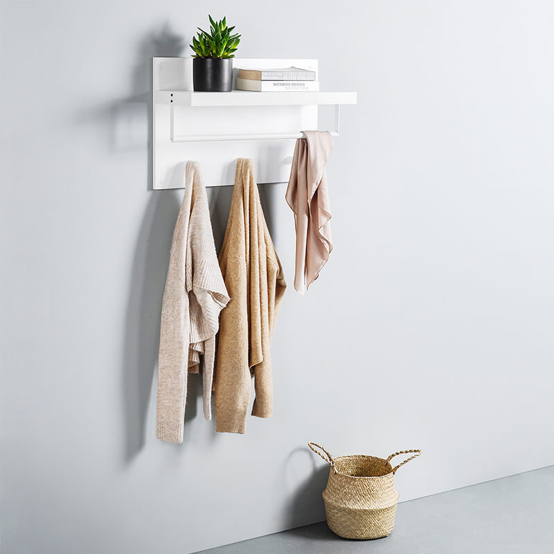 • Többfunkciós tárolási lehetőség: polc, akasztók és ruharúd