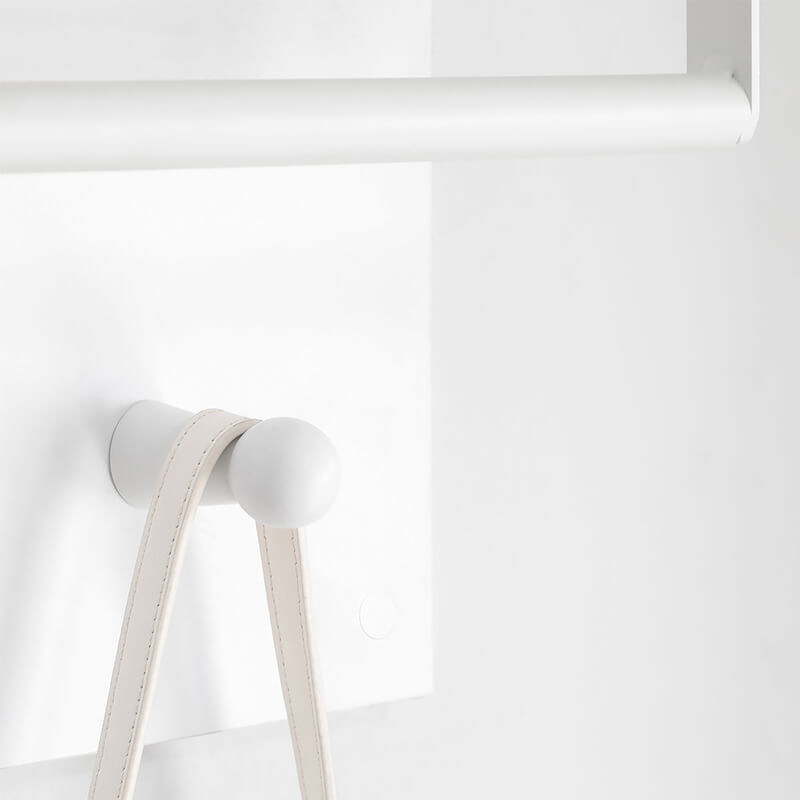 Ez a sokoldalú fali fogas panel tökéletes megoldást nyújt az előszobák rendszerezett kialakításához. A letisztult fehér dizájn három akasztóhoroggal, egy praktikus ruhaakasztó rúddal és egy felső polccal kombinálva maximális funkcionalitást biztosít minimális helyigénnyel.