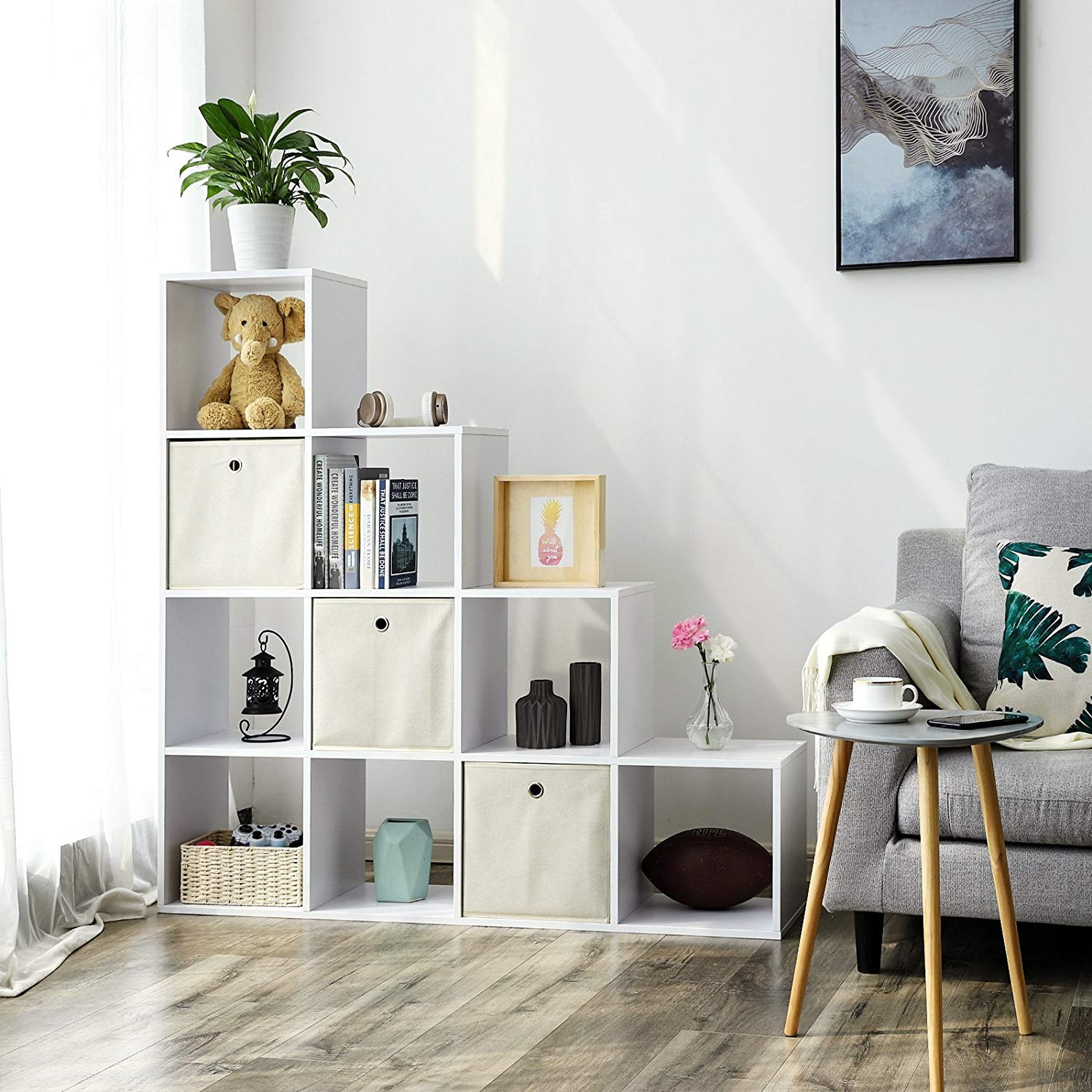 VASAGLE Lépcsőzetes Könyvespolc Fehér Térelválasztó 10 Rekesszel