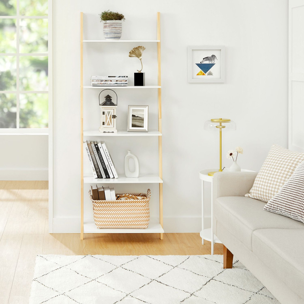 VASAGLE Létra Polc Skandináv Fenyő-Fehér 5-Szintes Könyvespolc
