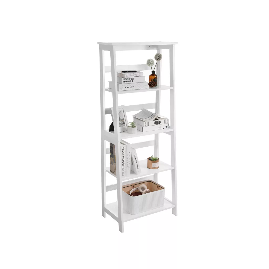 Elegáns, létrás kialakítású, 4 szintes könyvespolc, amely tökéletes megoldást nyújt könyvek, dekorációk és személyes tárgyak stílusos tárolására.