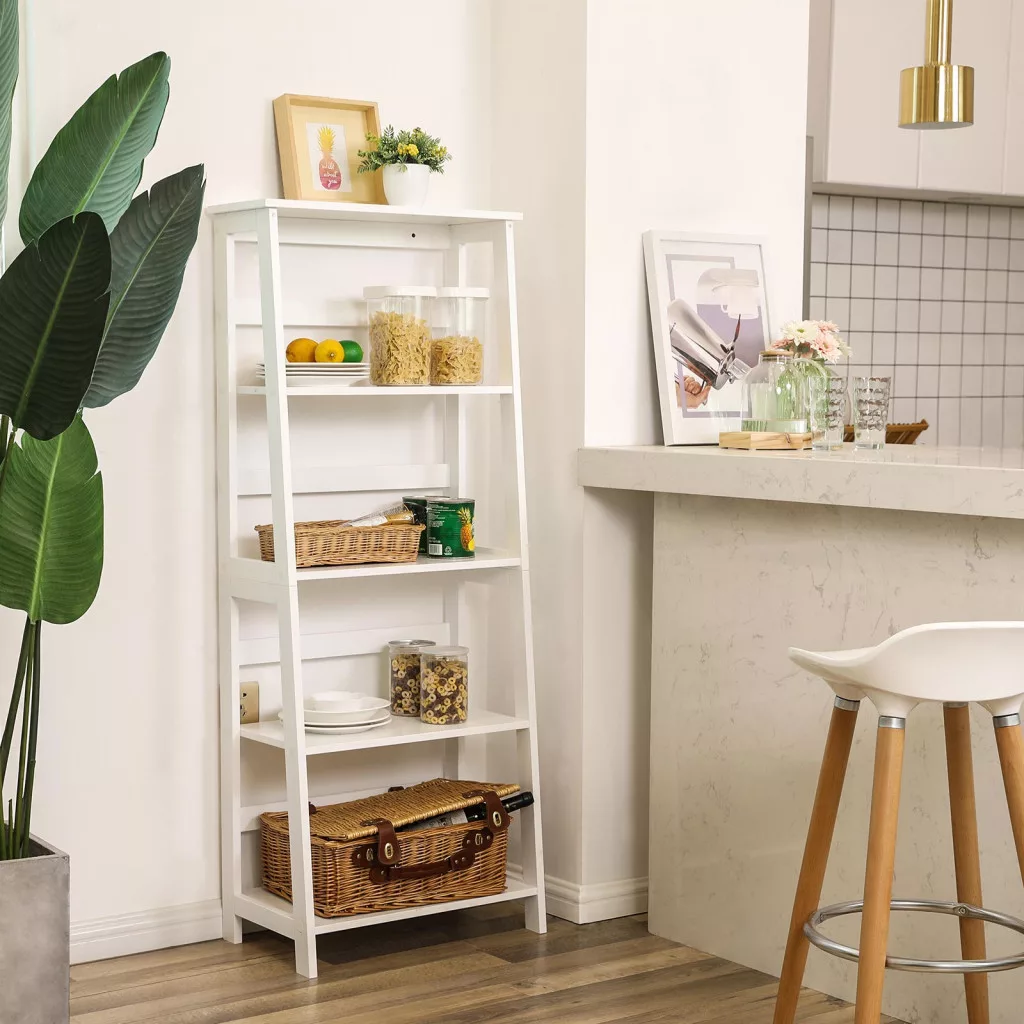 VASAGLE Létrás Könyvespolc Fehér MDF Tárolóállvány