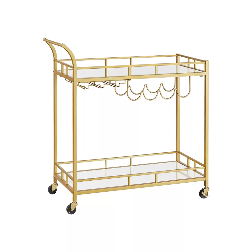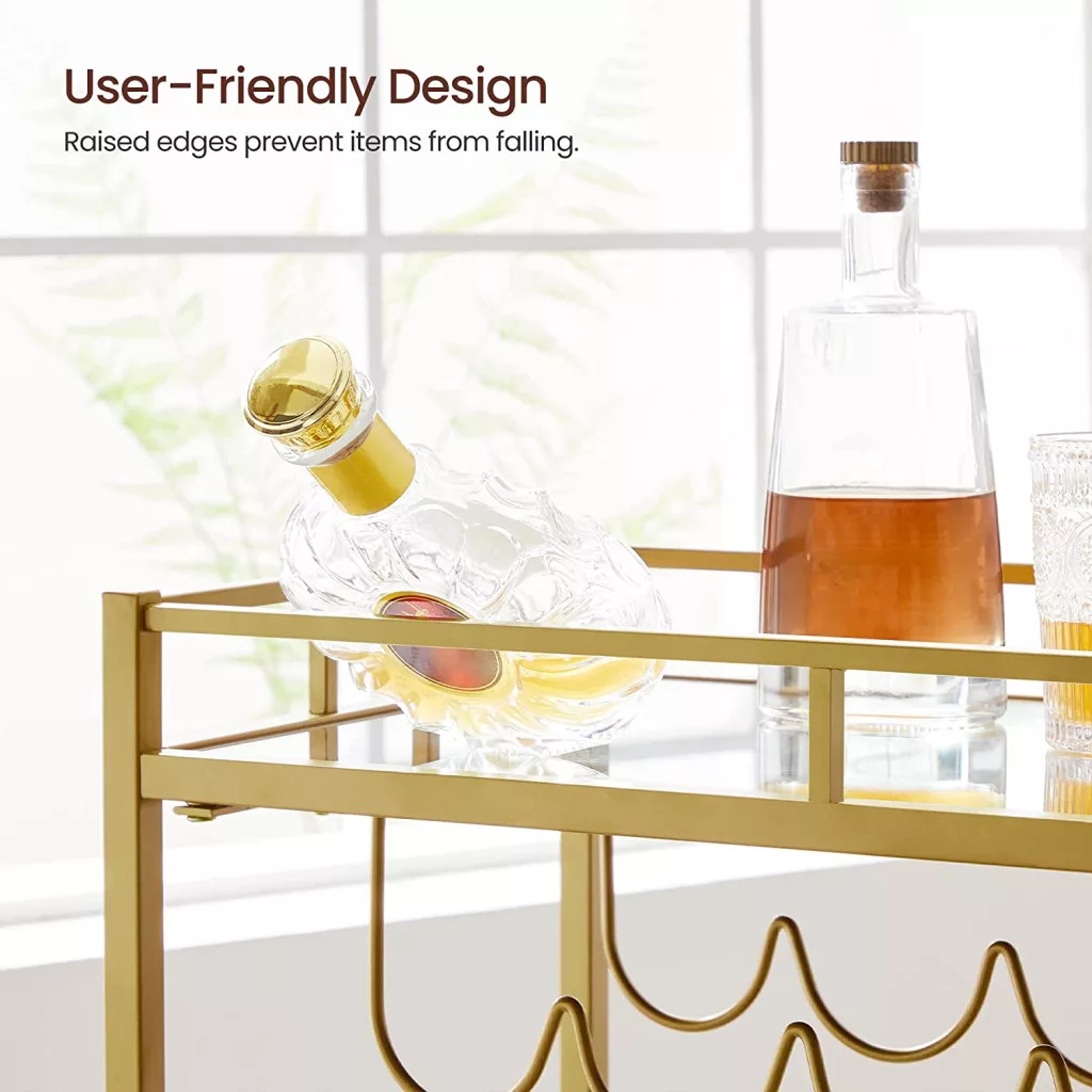 VASAGLE Luxus Arany Italszervírozó Kocsi Tükrös Üvegpolcokkal