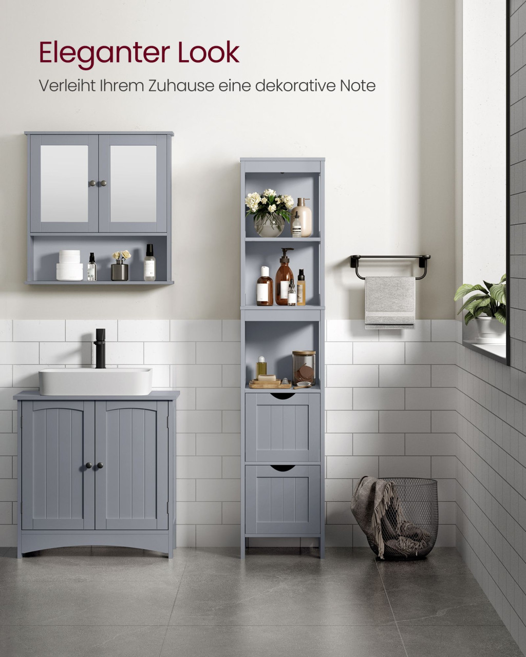 A karcsú, mégis stabil kialakítás lehetővé teszi, hogy a gyakran használt tárgyak könnyen elérhetők legyenek, míg a kevésbé mutatós eszközök diszkréten elrejthetők. A klasszikus dizájn harmonikusan illeszkedik bármilyen fürdőszobai környezetbe.